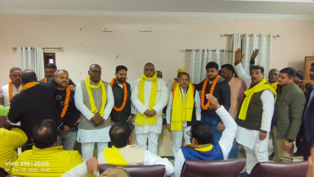 अतरौलिया आजमगढ़ अन्य राजनीतिक दलों को छोड़कर सैकड़ों कार्यकर्ताओं ने गुरुवार को सुहेलदेव भारतीय समाज पार्टी (सुभासपा) की सदस्यता ग्रहण की। यह कार्यक्रम स्थानीय निरीक्षण भवन में आयोजित किया गया, जहां कैबिनेट मंत्री एवं पंचायती राज विभाग के मंत्री माननीय ओमप्रकाश राजभर ने पार्टी पदाधिकारियों के साथ बैठक कर आगामी विधानसभा चुनाव को लेकर आवश्यक दिशा-निर्देश दिए। बैठक के दौरान आजमगढ़ जनपद के छपरा सुल्तानपुर निवासी शिवेश सिंह के नेतृत्व में बड़ी संख्या में कार्यकर्ता सुभासपा में शामिल हुए। शिवेश सिंह एक सामाजिक कार्यकर्ता होने के साथ ही महाराणा प्रताप संगठन के सक्रिय सदस्य भी हैं। उनके नेतृत्व में सैकड़ों लोगों ने पार्टी की प्राथमिक सदस्यता लेकर संगठन को मजबूती देने का संकल्प लिया। इस अवसर पर शिवेश सिंह ने कहा कि पार्टी द्वारा उन्हें जो भी दायित्व सौंपा जाएगा, उसका वह पूरी निष्ठा और ईमानदारी के साथ निर्वहन करेंगे। उन्होंने कहा कि माननीय ओमप्रकाश राजभर सभी वर्गों की आवाज बनकर शोषित, वंचित और गरीबों के हित में लगातार संघर्ष कर रहे हैं। उनकी कार्यशैली से प्रभावित होकर ही उन्होंने सुभासपा की सदस्यता ग्रहण की है। कैबिनेट मंत्री ओमप्रकाश राजभर ने नए सदस्यों का स्वागत करते हुए कहा कि निरीक्षण भवन में आज सैकड़ों लोगों का अन्य दलों को छोड़कर पार्टी से जुड़ना यह दर्शाता है कि जनता सुभासपा की नीतियों और विचारधारा पर भरोसा कर रही है। उन्होंने कहा कि पार्टी में शामिल हुए कार्यकर्ताओं को शीघ्र ही नई जिम्मेदारियां सौंपी जाएंगी, जिनका निर्धारण जिला अध्यक्ष एवं जिला मंत्री द्वारा किया जाएगा। सदस्यता ग्रहण करने वालों में प्रमुख रूप से आदित्य सिंह पालीवाल, मनीष सिंह, आकाश तिवारी, नवीन पांडेय, नीरज सिंह पालीवाल, अंकुर सिंह, सत्यप्रकाश सिंह, पीयूष सिंह, विजय सिंह प्रधान, विजय यादव सहित बड़ी संख्या में कार्यकर्ता मौजूद रहे।