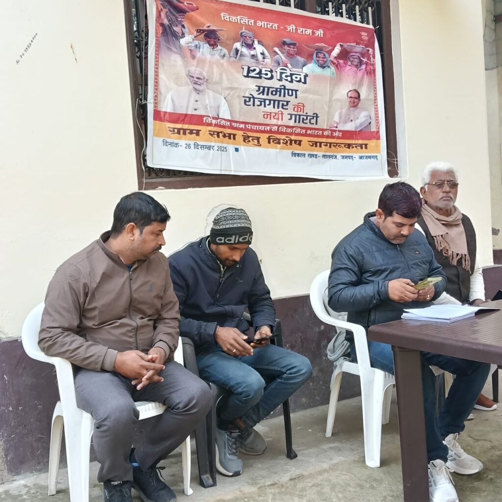 लालगंज (आजमगढ़)स्थानीय विकासखंड क्षेत्र के सिकरौरा गांव में शुक्रवार को ग्राम प्रधान उमाशंकर मिश्रा की अध्यक्षता में ग्राम सभा हेतु बिशेष जागरूकता के तहत (बी बी जी राम जी)ग्रामीण रोजगार की एक बैठक आहूत की गई। बैठक में सरकार की नीतियों के बारे में विस्तार से चर्चा की गई। बैठक को संबोधित करते हुए ग्राम विकास अधिकारी अमित यादव ने कहा कि सरकार की मंशा के अनुरूप होने वाले विकास कार्य जैसे मनरेगा का नाम अब बदलकर बिकसित भारत जी राम जी (बी बी जी राम जी)ग्रामीण रोजगार की नई गारंटी जैसे नाम दे दिया गया है। जिसमें ग्रामीणों द्वारा किए गए कार्यों का भुगतान 15 दिन के अंदर किया जाएगा।उन्होंने ग्रामीणों को पर्यावरण को विस्तार से बताते हुए ज्यादा से ज्यादा पेड़ लगाने के लिए प्रेरित किया गया। इसके साथ ही पेंशन आवास सहित तमाम योजनाओं को विस्तार से बताया गया।इस अवसर पर जय प्रकाश मिश्रा, तकनीकी सहायक अभिषेक, पंचायत सहायक गौरव सिंह, राजेश राय, अद्याशंकर मिश्रा, महेंद्र मिश्रा, अभिषेक सिंह, गुलाब कनौजिया, तूफानी चौहान, रमेश राम,अशोक राय सहित तमाम पुरुष महिला उपस्थित रही।