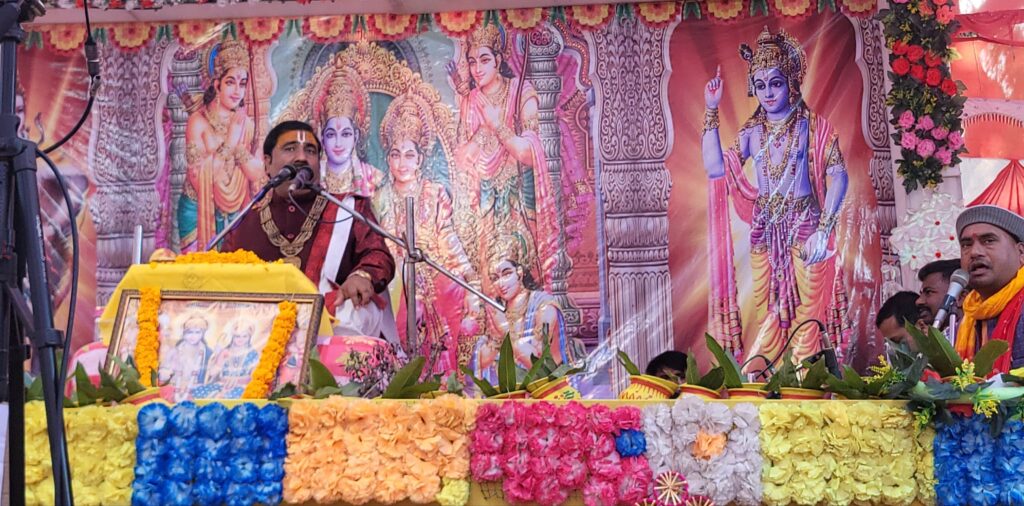 माहुल(आजमगढ़)। क्षेत्र के मेहियापार काजीपट्टी मे चल रही सात दिवसीय आनन्द मयी राम कथा ज्ञान यज्ञ के पांचवें दिन कथा वाचक पंडित कौशल किशोर जी महाराज ने राम जन्म और उनकी लीलाओं का सुंदर वर्णन किया। जिसको सुनकर श्रोता भाव विभोर हो गए और जय श्री राम के नारों से पूरा वातावरण गूंज उठा। कथा वाचक पंडित कौशल किशोर महाराज ने कथा में राम जन्म का सुंदर वर्णन करते हुए कहा कि अयोध्या मे राम जन्म हुआ तो ऐसा उत्सव हुआ कि एक महीने मानो रात हुई ही नही। अपने रथ के साथ सूर्य देव भी थक गये भगवान शिव भी बाल लीला और प्रभू श्रीराम का दर्शन करने पहुंच गये दुर से भोलेनाथ ने प्रभू को मन ही मन प्रणाम किया और माता कौशल्या से दर्शन की इच्छा जताई। कौशल्या साधू वेष को देखकर बालक को दिखाने से मना कर दिया बाबा ने कहा हम यही बैठेंगे दर्शन करने के बाद ही जायेगे प्रभू श्रीराम ने शिव के हठ योग को समझ लिया और रोने लगे। कहां की तपस्वी का बल क्षमाशीलता में छिपा होता है इस तरह से बालक का बल रोने में होता है नारी का बाल पतिव्रता में होता है कहां की भगवान ने ब्राह्मण, गाय, देवता, संत की रक्षा के लिए पृथ्वी पर अयोध्या में महाराज दशरथ के पुत्र के रूप में अवतरित हुए भगवान अपने सच्चे भक्तों के लिए नंगे पैर दौड़कर रक्षा करते हैं जैसे उन्होंने द्रोपती की दुशासन से रक्षा की ग्राह से गज को बचाया सिर्फ सच्ची भक्ति से प्रभु मिलते हैं और वह कण कण में व्याप्त हैं। सत्य से बड़ा कोई धर्म नहीं और झूठ से बड़ा कोई पाप नहीं है। कथा दिन में दो बजे से शुरू होकर शाम छह बजे तक चली जिसे सुनने के लिए पांडाल श्रद्धालुओं से खचाखच भरा रहा।।