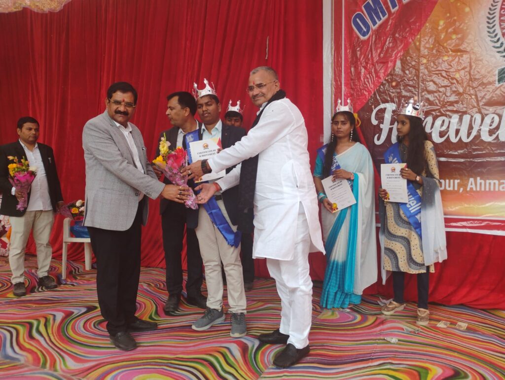 मार्टिनगंज आजमगढ़ मार्टीनगंज तहसील क्षेत्रांतर्गत मोलनापुर अहमद बख्श फुलेश स्थित ओमप्रकाश मिश्र इंटर कालेज के कक्षा 12वीं के छात्र छात्राओं का फेयरवेल सेरेमनी कार्यक्रम शुक्रवार को दोपहर में विविध सांस्कृतिक कार्यक्रमों के बीच हर्षोल्लास पूर्ण वातावरण में सम्पन्न हुआ। कार्यक्रम का शुभारम्भ मुख्य अतिथि निवर्तमान जेल अधीक्षक अम्बेडकरनगर डा0शशिकांत मिश्र व संस्थान के चेयरमैन कृष्ण कांत मिश्र के द्वारा गणेशजी व मां सरस्वती व स्व0ओमप्रकाश मिश्र के चित्र पर माल्यार्पण कर समक्ष दीप प्रज्जवलन कर किया गया, तत्पश्चात इंटर कालेज के प्रधानाचार्य आलोक शुक्ल के द्वारा मुख्य अतिथि तथा संस्थान के चेयरमैन का माल्यार्पण कर बुके देकर स्वागत किया गया। इसके बाद छात्र छात्राओं के द्वारा सरस्वती वंदना,गणेश वंदना, स्वागत गीत, समूह नृत्य,एकांकी,गीत,समूह नृत्य हम वक्त बदल देंगे हम जज़्बात बदल देंगे , छठ पूजा गीत ,गीत नज़्म, कविता, एकांकी स्वच्छता अभियान आदि की मनमोहक प्रस्तुतियां पेश की गई कार्यक्रम के दौरान मुख्य अतिथि के हाथों वर्ष 2025 के वर्गवार टापर छात्र छात्राओं को प्रमाण पत्र दिया गया अंत में फेयरवेल सेरेमनी में भाग लेने वाले मिस्टर फेयरवेल व मिस फेयरवेल के नाम की घोषणा की गई जिसमें अनुराग मिस्टर फेयरवेल और पलक को मिस फेयरवेल से सम्मानित किया गया ।इस अवसर पर ऊषा मिश्रा ,गीता मिश्रा, डा0धीरेंद मिश्र प्राचार्य,प्रदुम्न मिश्र,डा 0 आर एस एन त्रिपाठी,विनीत दुवा, गिरीश दत्त मिश्र, सुरेश तिवारी,सुनील दूबे,दुर्गेश मिश्र आदि उपस्थित रहे।