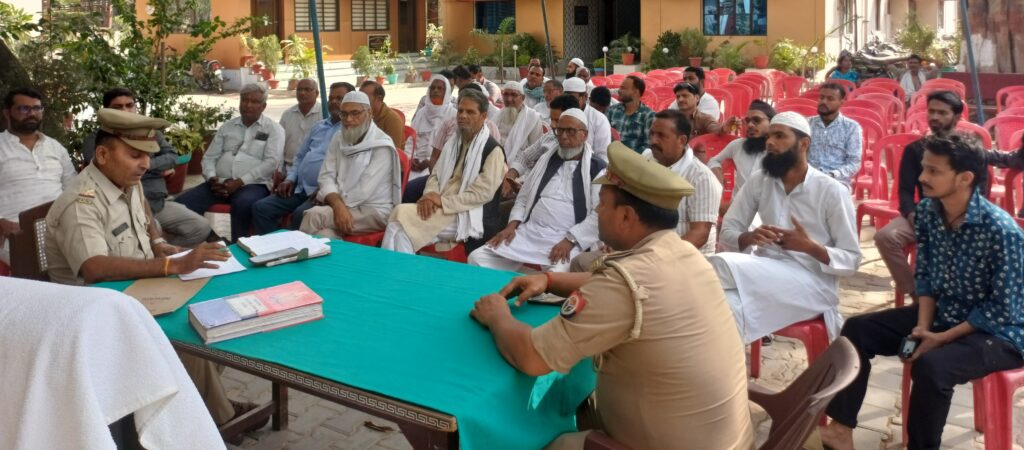 फूलपुर आजमगढ़ फूलपुर ईद के मद्देनजर कोतवाली परिसर में सीनियर सब इंस्पेक्टर दिनेश त्रिपाठी और सुधीर सिंह की अध्यक्षता में मंगलवार को पीस कमेटी की बैठक हुई।बैठक में आपसी सौहार्द व शांति से त्योहार मनाए जाने की अपील की गई। दिनेश कुमार त्रिपाठी ने शांति व्यवस्था बनाए रखने के साथ ही ईद के त्योहार को सौहार्द के साथ मनाने को कहा।ईदगाह अथवा मस्जिद में नमाज अदा करे।सड़कों पर कदापि नमाज न पढ़े।किसी भी तरह की समस्या आने पर तुरंत पुलिस को सूचित करे।सभी पर्व शांति का संदेश देता है।ईद का पर्व परंपराप्त गत ढंग से मनाए।इस अवसर पर अजय जयसवाल, मोहम्मद आरिफ, अयाज खान, तैयब शेख, सूफियाना अंसारी, राजेश यादव, इम्तियाज, इफ्तेखार, जिशान आदि लोग मौजूद थे।