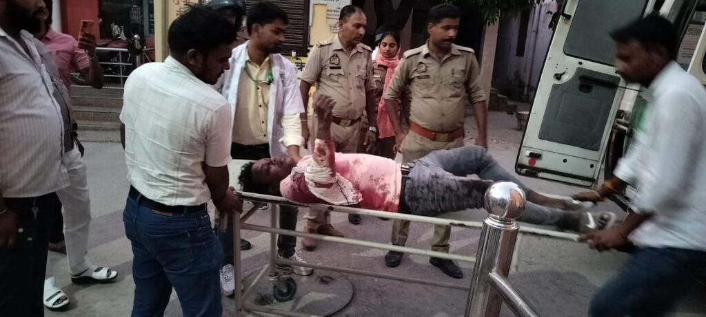फूलपुर आजमगढ़ फूलपुर कोतवाली क्षेत्र के बैसडीह गांव स्थित अमृत सरोवर के पास शनिवार को शाम लगभग छह बजे के करीब पति ने पत्नी को प्रेमी संग जाते हुए देख लिया पहले से घात लगाए पति ने उसके प्रेमिका को कट्टे से प्रहार कर दिया जिससे प्रेमी के हाथ में गोली लगी और वह घायल हो गया।आरोपी मौके से फरार हो गया।इस दौरान दोनों के बीच हाथापाई भी हुई। मौके पर पहुंची पुलिस ने एम्बुलेंस को बुलाया और घायल को सीएचसी में भर्ती कराया। जहां डाक्टरों ने उसे रेफर कर दिया।जानकारी के अनुसार अंजली 32 का कोतवाली क्षेत्र के कतरा कुटिया आंखूपुर में मायका है।उसकी शादी कप्तानगंज थाना के मेनमवली गांव के केसरी चौहान से हुई थी।महिला काफी दिनो से अपने मायके कतरा कुटिया रहती थी। उसके दो लड़की और एक लड़का है,शनिवार को महिला रमेश कुमार 30 निवासी पेंडरा सरायमीर के साथ दवा लेकर घर जा रही थी।जैसे ही वे बैसडीह अमृत सरोवर के पास पहुंचे पहले घात लगाए पति और दो साथी घात बैठे थे।इस दौरान पति और प्रेमी के साथ जमकर हाथापाई हुई और पति ने तमंचा से प्रहार कर दिया गोली प्रेमी के दाएं हाथ में लगी गोली आवाज सुन काफी लोगों की भीड़ जुट गए इस बीच मौका पाकर आरोपी फरार हो गया।स्थानीय लोगों ने घटना की जानकारी स्थानीय पुलिस को दी,घटना की सूचना मिलते ही घटनास्थल पर सीओ किरन पाल सिंह और कोतवाल सच्चिदानंद कर जाँच कर रहे है।