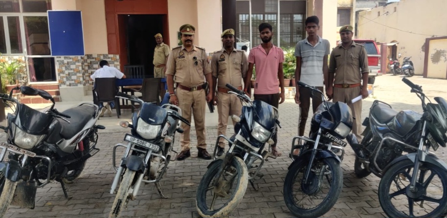 शहर कोतवाली पुलिस ने मो0सा0 चोरी करने वाले 02 अभियुक्तों को किया गिरफ्तार , चोरी की 05 मोटर साइकिल व 2 तमन्चा 315 बोर, 4 जिन्दा कारतूस बरामद