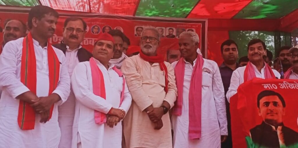रौनापार (आजमगढ़) विधानसभा सगड़ी क्षेत्र के चौको बाजार में सपा के जनसभा को संबोधित करते हुए स्टार प्रचारक शिवपाल यादव ने कहा की यह बेईमानों की सरकार है, इसको उखाड़ फेंकना है। बीजेपी कहती है अबकी बार 400 पार जबकि 200 पार भी नहीं कर पाएगी बीजेपी। इंडिया गठबंधन बदायूं और मैनपुरी जो जनता का आशीर्वाद और सहयोग मिला है। 7 साल पहले हमारी सरकार ने देवरा क्षेत्र में हाजीपुर पुल निर्माण के लिए उद्घाटन और शिलान्यास किया था, पैसा भी दिया था, लेकिन 7 साल बीतने के बाद भी पूल का निर्माण पूरा नहीं हो पाया, अगर हमारी सरकार रहती तो 1 वर्ष में यह काम पूरा हो जाता। हमारी सरकार ने बंधे का मरम्मत कराया, हमारी सरकार ने किसानों को पेंशन दे रही थी, जिसको बीजेपी सरकार ने बंद कर दिया। अगर फिर सरकार बनेगी तो किसानों की पेंशन बहाल कर दी जाएगी। हम लोगों की फिर सरकार बनेगी तो फिर विकास होगा। भ्रष्टाचार चरम पर है जितनी भर्तियां निकली सबका पेपर लीक हो गया। ऐसे बेईमान सरकार को ही हटाना होगा। बेरोजगारों को रोजगार नहीं मिल रहा, विकास कार्य ठप है। सपा प्रत्याशी धर्मेंद्र यादव ने कहा की अबकी बार जनता हमारे साथ है। सभी लोगों का आशीर्वाद मिल रहा है। आदित्य यादव ने कहा आज बेरोजगार रोजगार के लिए दर-दर भटक रहा है। साथ सगड़ी विधायक एच एन सिंह पटेल, आदित्य यादव, हरेंद्र यादव,शिवसागर यादव, सूरज यादव, दिनेश राय, रीना पटेल,राजेश यादव, हवलदार यादव, उधम सिंह, जगदीश यादव, सूरज यादव, गौतम राम निषाद, जयराम सिंह पटेल, विनीत मौर्य, नंदलाल यादव, पूर्व विधायक अभय नारायण पटेल आदि लोगों ने भी सभा को संबोधित किया। इस मौके दीपक यादव, बृजेश यादव, आदि लोग मौजूद थे।