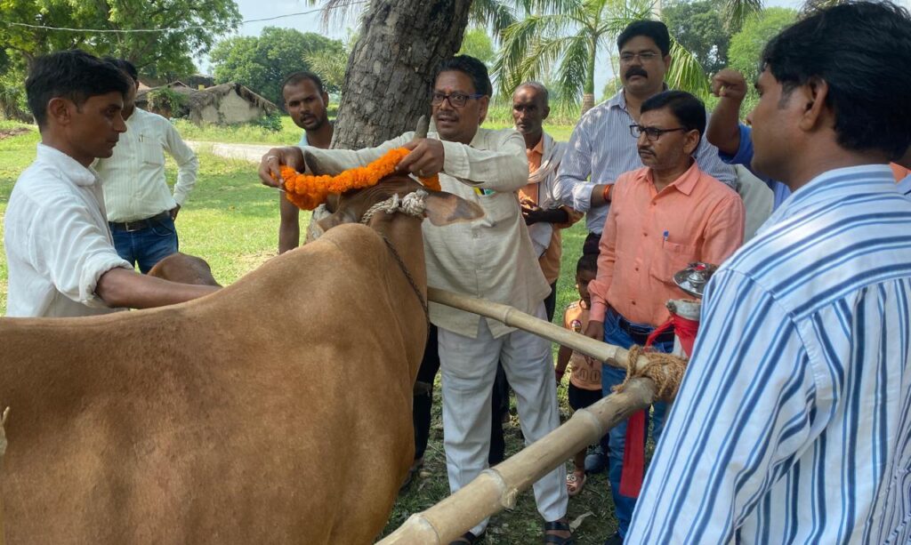 मार्टीनगंज आजमगढ़ विकास खंड फूलपुर अंतर्गत सलाहुद्दीन पुर हारुन पुर गांव में पशुपालन विभाग द्वारा बुधवार को पं0दीनदयाल उपाध्याय पशु आरोग्य शिविर मेला का आयोजन किया किया गया ।पशु आरोग्य शिविर मेला का शुभारंभ जिला कोषाध्यक्ष भाजपा लालगंज दिनेश जायसवाल व भाजपा मंडल अध्यक्ष दीदारगंज अजय सिंह के द्वारा गो माता की पूजा कर किया गया। तत्पश्चात उप मुख्य पशु चिकित्साधिकारी फूलपुर डा0अनिल कुमार वर्मा व पशु चिकित्साधिकारी डा0आलोक कुमार सिंह पालीवाल ने पशओं में होने वाली बीमारी गला घोटू,खुर पका मुह पका, लम्पी त्वचा रोग,लंगड़ी, बकरियों की पीपीआर, बाझपन, थनैली आदि के इलाज एवम बचाव के विषय में विस्तृत जानकारी एवम निशुल्क दवा का वितरण पशुपालकों को किया गया। साथ-साथ 120 पशुओं का टीकाकरण भी किया गया। कुल 240बड़े पशुओं, तथा 315छोटे पशुओं का पंजीकरण कर दवा दी गई। इस अवसर पर राम सुरेश यादव, पशुधन प्रसार अधिकारी, विक्रमा प्रसाद यादव, एवम पशुपालक सुनील दूबे ,संजय यादव, रामसागर यादव, तेजबहादुर यादव, राज बहादुर यादव, हवलदार यादव, संतोष कुमार यादव, केदार यादव, जितेन्द्र गौतम, भोला गौतम, दिनेश गौतम, रामचेत गौतम, मुन्नी लाल आदि लोग उपस्थित थे।