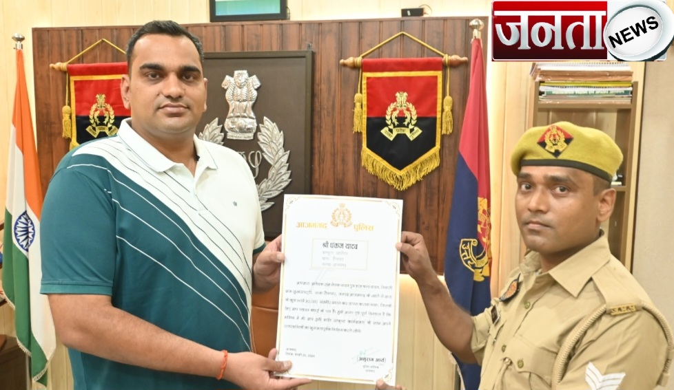 (आजमगढ़ ) । पुलिस अधीक्षक आजमगढ़ अनुरागआर्य ने उत्कृष्ट कार्य करने पर जिले के पुलिस कर्मियों को प्रशस्ति पत्र देकर सम्मानित किया, इसी क्रम में रौनापार थाने पर तैनात कंप्यूटर ऑपरेटर पंकज यादव को उनके द्वारा किए गए कार्य कुशलता से सराहनीय कार्य करने पर प्रशस्ति पत्र देकर सम्मानित किया। बता दें कि रौनापार थाना क्षेत्र के ग्राम सुखऊ पट्टी निवासी रामसेवक यादव के खाते से फ्रॉड के कुल रुपए 30000 अपने अथक प्रयास से कंप्यूटर ऑपरेटर पंकज यादव ने वापस कराया था। उनके इस कार्य पर पुलिस अधीक्षक आजमगढ़ अनुराग आर्य ने उन्हें बधाई देते हुए प्रशस्ति पत्र देकर सम्मानित किया।