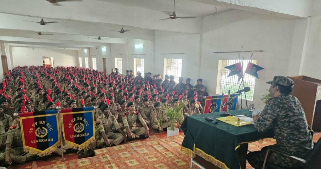 आजमगढ़ । 99 यू0पी0 बटालियन एन सी सी के तत्वावधान में,एन सी सी कैडेट्स का दस दिवसीय वार्षिक प्रशिक्षण शिविर , सी ए टी सी-312 जो 27 मई से 5 जून तक संचालित होना है,मंगलवार को सर्वोदय पब्लिक स्कूल ,घोरठ में अपने ओपनिंग एड्रेस में कैम्प कमांडेंट ने अपने उद्बोधन में कहा कि भारत की दूसरी रक्षा पंक्ति के नाम से विख्यात एन सी सी संगठन के अधीन यह कैम्प को दो मुख्य बिंदुओं पर केंद्रित होगा एक तो आगामी थल सैनिक कैम्प के लिए योग्य कैडेटों का चयन, दूसरा कैडेटों को रेजिमेंटल वे ऑफ लाइफ का प्रशिक्षण प्रदान करना। एनसीसी संगठन का उद्देश्य ही है अनुशासित और उच्च चरित्र के ऐसे युवाओं का निर्माण करना जो न केवल भारतीय सेना अपितु समाज मे अपनी सेवाओं के माध्यम से उच्च गुणवत्तापूर्ण मानव संसाधन के रूप में राष्ट्र की सेवा कर राष्ट्रीय ध्वजा का परचम लहरा सकें। कैम्प कमांडेंट ने गर्मी के मौसम के सभी को अपने स्वास्थ्य का ध्यान रखने हेतु आवश्यक सावधानियों का पालन करने का निर्देश दिया एवं किसी भी समस्या पर उचित माध्यम से रिपोर्ट करने का भी निर्देश दिया। उन्होंने सभी को शुभकामनाएं देते हुये कहा कि कैम्प की विविध गतिविधियों द्वारा सभी कैडेट्स अंतिम दिन तक अच्छे प्रशिक्षण और अनुभव से संचित होकर एक नए व्यक्तित्व से सम्पन्न होकर अपने घरों को लौटेंगे। ओपनिंग एड्रेस के अवसर पर विभिन्न कॉलेजों से सहयुक्त एन सी सी अधिकारीगण,सूबेदार मेजर,पी आई स्टॉफ और 500 कि संख्या में विभिन्न कॉलेजों के कैडेट्स उपस्थित रहे।