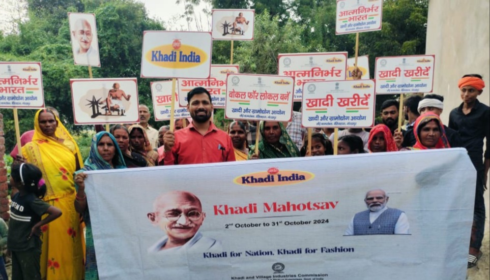 अतरौलिया आजमगढ़ मंडलीय कार्यालय खादी एवं ग्रामोद्योग गोरखपुर द्वारा रविवार को पंडित विश्वनाथ खादी ग्रामोद्योग विकास संस्थान रतुवा पार आजमगढ़ के द्वारा खादी यात्रा निकाली गई । इस दौरान संस्थान के प्रांगण में वृक्षारोपण भी किया गया। कार्यक्रम के मुख्य अतिथि ऐ के उपाध्यक्ष (सहायक खादी) इस्लाख खान (सहायक खादी) के उपस्थिति में संस्था सचिव जय कृष्णा पांडे द्वारा यह कार्यक्रम संपादित किया गया। इसी क्रम में आर एल विद्यालय कनैला आजमगढ़ में स्कूली बच्चों एवं कृत्रिम बुनकरों, कामगारों एवं संस्था के पदाधिकारी की उपस्थिति में खादी एवं स्वच्छता की शपथ भी दिलाई गई। मुख्य अतिथि एके उपाध्याय ने कहा कि 2 अक्टूबर गांधी जयंती के अवसर पर खादी महोत्सव मनाया गया, तत्पश्चात दो गांव में जागरूकता यात्रा निकाली गई।इस दौरान वृक्षारोपण कार्यक्रम भी किया गया है। यह कार्यक्रम 2 अक्टूबर से 31 अक्टूबर तक जारी रहेगा। संस्था सचिव जय कृष्णा पांडे ने कहा कि भारत सरकार के दिशा निर्देशन में मंडलीय कार्यालय खादी ग्रामोद्योग भारत सरकार के डायरेक्शन में आए हुए अधिकारी गण के दिशा निर्देशन में खादी यात्रा निकाली गई है। इस दौरान लोगों के हाथों में लिखे हुए स्लोगन, खादी खरीदो, खादी पहनो तथा नारे भी लगाए गए। यह कार्यक्रम 31 अक्टूबर तक चलाया जाएगा। इस मौके पर विशाल पांडे, दिलीप सिंह, कृष्णा तिवारी ,मोहम्मद इदरीश, विकास पांडे आदि उपस्थित थे।