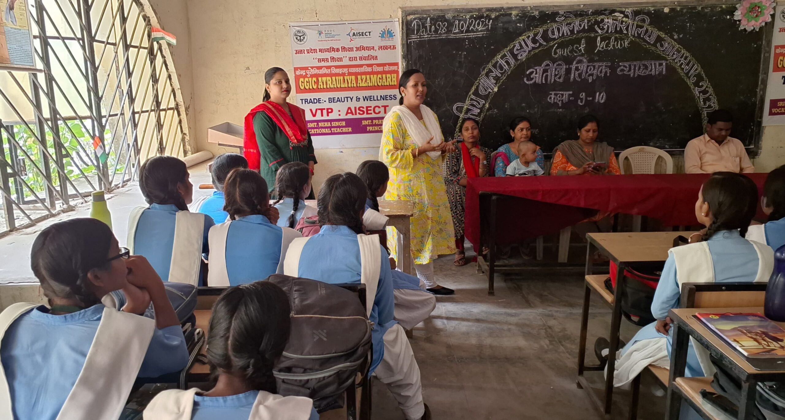 अतरौलिया आजमगढ़ राजकीय बालिका इण्टर कालेज में केन्द्र पुरोनिधावित व्यावसायिक शिक्षा के कार्यदायी शिक्षक संस्था आईसेक्ट द्वारा अतिथि ब्याख्यान कराया गया। आइसेक्ट संस्था द्वारा संचालित बेलनेस ट्रेड में नामांकित कक्षा 9 और 10 के बच्चों को अतिथि विषय विशेषज्ञ आर्यन सिंह (रिटेल) और कंनक लता व्यूटी के माध्यम से अतिथि ब्याख्यान कराया गया। आईसेक्ट संस्था के वीसी सुरेन्द्र कुमार यादव ने व्याख्यान की सराहना करते हुए कहे कि इस तराह के ब्याख्यान में बच्चों में शिक्षा के प्रति रुचि जागृत होती है तथा बच्चे कुछ नया सीखते हैं। साथ ही AISECT वीसी ने बच्चों को इंडस्ट्री विजिट कराने का भी आश्वासन दिए। आर्यन सिंह ने बताया कि व्यावसायिक शिक्षा में लोगो को रोजगार मिल रहा है। अतिथि व्याख्यान की सराहना करते हुए प्रधानाचार्या प्रतिभा ने कहा कि इस तरह के प्रोग्राम से बच्चों का मनोबल और उत्साह बढ़ता है और बच्चो के अन्दर सीखने की कला भी विकसित होती है। अतिथि व्याख्यान के समय व्यावसायिक शिक्षक निखिल सिंह, शिक्षिका नेहा सिंह, प्रधानाचार्य प्रतिभा और और सहायक अध्यापिका रेखा बीना, तंद्रा ,किरन उपस्थित रही।