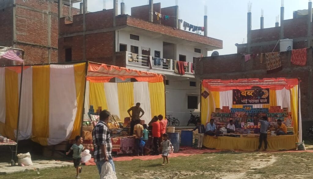 फूलपुर आजमगढ़ फूलपुर कस्बा और ग्रामीण अंचल में दीपावली का पर्व धूमधाम से मनाने की पूरी तैयारियां चल रही है,नगर में मिट्टी की लक्ष्मी गणेश की प्रतिमा के साथ मिट्टी के दिए कलश आदि की दुकान दुकानदारों दुवारा लगाये है सबसे अधिक मिट्टी के दिए कि विक्री हो रही है।दिए प्रति नग दो रुपये में तथा ढकनी कलस आदि की कीमत छोटे बड़े के हिसाब से वही फूलपुर मिर्चा मंडी में दस बड़ी पटाखों की दुकान सजी है।पटाखा बिक्रेता आग से बचाव के लिए ड्रम में पानी बोरी में बालू सहित अन्य उपकरण रखे तो नगर पंचायत द्वारा पानी का टैंकर खड़ा किया गया है।वही प्रशासन द्वारा अग्नि शमन वाहन के साथ जवान मुस्तैद है।तो पर्व को देखते हुए कोतवाल नगर में चक्रमण कर रहे तो मुख्य मार्गो गली चौराहों पर होमगार्ड चौकीदार पुलिस के जवान लगे हुए हैं।