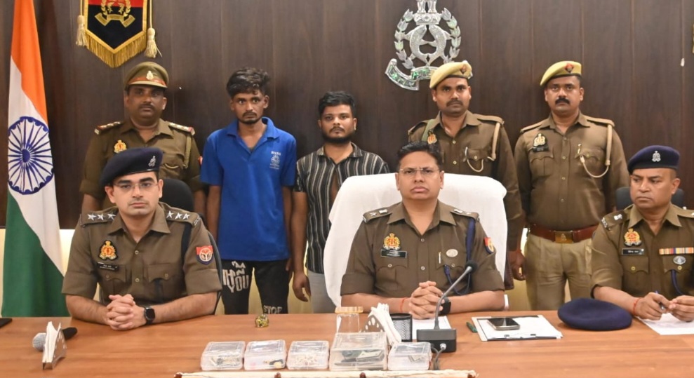 आजमगढ़ । थाना सिधारी व एसओजी की संयुक्त पुलिस टीम द्वारा शाहगढ़ में लूट व चोरी की घटना करने वाले 2 शातिर अपराधियों को गिरफ्तार किया है । अभियुक्तो के कब्जे से पुलिस ने लूट के जेवरात (कीमत लगभग 1.5 लाख रूपयें), अवैध असलहा, कारतूस व 11 हजार रूपयें नकदी बरामद किया है । पकड़े गए चोरों में टेनी उर्फ सरताज आलम पुत्र गुड्डू उर्फ आविद साकिन आदर्श नगर थाना जीयनपुर व शेरु उर्फ मो0 महफुज पुत्र मो0 अजीज निवासी खास बाजार थाना जीयनपुर शामिल हैं । बता दें कि इन्द्रेश गोंड पुत्र महेश गोंड ग्राम पुनापार थाना घोसी जिला मऊ हाल पता- ननिहाल उमेश गोंड पुत्र खुरचन गोंड ग्राम शाहगढ़ थाना सिधारी जनपद आजमगढ़ उपस्थित थाना आकर एक लिखित तहरीर दिया कि दिनांकित 03/11/24 बावत दिनांक 03/11/24 समय रात्रि 2.00-3.00 बजे के मध्य तीन व्यक्ति नाम पता अज्ञात घर के पीछे से चैनल का ताला तोड़कर घर के अंदर घुसे, और हमारी नानी को मारने पीटने लगें, शोर सुनकर वादी व वादी स्वंय की मामी जागकर बीच-बचाव करने गये, तो वे सब मिलकर के हमें और हमारी मामी को डण्डे से मारने पीटने लगे, जिससे काफी चोट आ गयी, तथा बक्सा तोड़कर उसमें रखे वादी की मामी के 13 थान सोने का एंव 8 थान चांदी का एंव नानी का 3 थान सोने का व 2 थान चांदी का गहना व पांच बैग व दो अटैची उठा ले गए, इस सम्बन्ध में तहरीरी के आधार पर मु0अ0सं0- 0428/2024 धारा 331(4),309(6) बी0एन0एस0 बनाम 03 व्यक्ति नाम पता अज्ञात के पंजीकृत किया गया । जिसकी विवेचना वीरेन्द्र कुमार प्र0नि0 थाना सिधारी आजमगढ़ द्वारा किया जा रहा है । पुलिस अधीक्षक आजमगढ़ हेमराज मीना द्वारा लूट की घटना का सफल अनावरण व अभियुक्तों की गिरफ्तारी हेतु थाना प्रभारी सिधारी को निर्देशित किया गया था, जिसके क्रम में आज दिनांक 19/11/2024 को प्रभारी निरीक्षक बीरेन्द्र कुमार वर्मा मय हमराह को सूचना मिली कि दिनांक 3/11/2024 को शाहगढ में जो लूट की घटना कारित किये हैं वे अपराधी इस समय माल के साथ कहीं बाहर जाने की फिराक में बैठौली पुल से कुछ पहले दाहिने तरफ रास्ते पर खडे होकर किसी का इंतजार कर रहे हैं, यदि जल्दी करें तो अपराधी माल के साथ पकडे जा सकते हैं । इस सूचना पर तत्काल पुलिस मौके पर पहुँचकर अभियुक्त 1.टेनी उर्फ सरताज आलम पुत्र गुड्डू उर्फ आविद साकिन आदर्श नगर थाना जीयनपुर जनपद आजमगढ उम्र करीब 24 वर्ष, 2. शेरु उर्फ मो0 महफुज पुत्र मो0 अजीज निवासी खास बाजार थाना जियनपुर जनपद आजमगढ उम्र 22 वर्ष को एक अदद मंगलसूत्र पीली धातू, एक अदद करधन सफेद धातू, एक अदद अंगूठी पीली धातू, एक अदद विछिया ,एक अदद पायल सफेद धातू,एक अदद मंगलसुत्र का लाकेट पीली धातु व एक जोडी पायल सफेद धातु,एक अदद तमंचा 305 बोर व 02 अदद जिन्दा कारतूस 315 बोर व एक अदद तमंचा 305 बोर व 02 अदद जिन्दा कारतूस 315 बोर तथा 11 हजार रूपयें के साथ बैठौली पुलिया के पास स