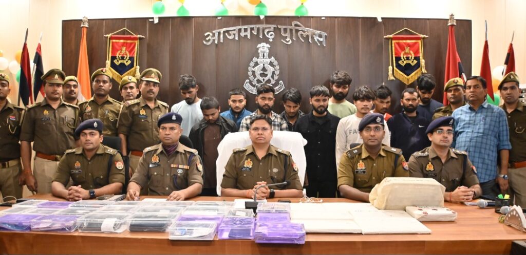 आजमगढ़ । पुलिस अधीक्षक हेमराज मीना के निर्देशन में साइबर अपराध व साइबर अपराधियों पर अंकुश एवं प्रभावी नियन्त्रण बनाये रखने हेतु अभियान के क्रम में थाना साइबर क्राइम आजमगढ़ पुलिस द्वारा अवैध अन्तराष्ट्रीय ऑनलाईन जुआ सरकार द्वारा प्रतिबन्धित एप्पस REDDY ANNA, LOTUS, MAHADEV का पर्दाफास किया गया है, जिसमें 11 अभियुक्तों के संगठित गैंग की गिरफ्तारी की गयी है । यह संगठित गैंग ऑनलाइन बेटिंग एप के जरिए सोशियल मीडिया प्लेटफार्म इन्सटाग्राम, वाट्सएप्प, मेटा व टेलीग्राम पर विज्ञापन के माध्यम से लोगों को फंसाते थे एवं उनके पैसों को दुगुना तीन गुना जीतने का प्रलोभन देकर इन एप्प के विभिन्न गेमों में उनकी लागिन आईडी बनाकर साइबर ठगी करके उनका सारा पैसा फर्जी खातों व फर्जी मोबाइलों के जरिए ट्रांसफर कर लेते थे तथा उनकी आईडी ब्लाक कर देते थे, इस संगठित गैंग में भारत एवं अन्य देश जैसे श्रीलंका, यूएई के मेम्बर विभिन्न वाट्सएप्प ग्रुप से जुड़े थे एवं ठगी के पैसे का आदान प्रदान करते थे । गिरफ्तार किये गए 11 अभियुक्तों में उत्तर प्रदेश से 06, बिहार से 02, उड़ीसा से 02, मध्यप्रदेश से 01 हैं । देश के विभन्न राज्यों में इनके विरुद्ध कुल 71 साइबर ठगी ( एनसीआरपी कम्प्लेन) के मामले दर्ज है ।