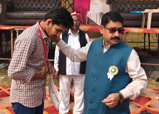 फूलपुर आजमगढ़ फूलपुर युवा कल्याण बिभाग के द्वारा ब्लाक स्तरीय क्रीड़ा प्रतियोगिता का आयोजन फूलपुर के राम मनोहर लोहिया पार्क में आयोजित किया गया था।बैडमिंटन खेल में आशुतोष पांडेय के प्रथम स्थान मिला है। इस दौरान एसडीएम सुरेंद्र नारायण त्रिपाठी एवं क्षेत्रीय क्रीड़ा युवा कल्याण अधिकारी रोहित यादव के द्वारा आशुतोष पांडेय को बैडमिंटन खेल में प्रथम स्थान मिलने पर प्रशस्ति पत्र और मेडल देकर सम्मानित किया गया।इस अवसर पर राजेश पाण्डेय,योद्धा,नीरज,अनुराग रमेश,दिनेश आदि लोग रहे।