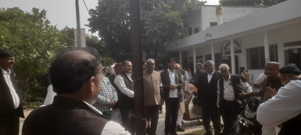 लालगंज (आज़मगढ़) संभल कांड में अधिवक्ताओं के विरुद्ध दंडात्मक कार्यवाही की मांग करने पर आक्रोशित अधिवक्ताओं ने अखिलेश यादव के खिलाफ नारेबाजी कर तहसील में प्रदर्शन कर न्यायिक कार्य का बहिष्कार किया।सपा अध्यक्ष व पूर्व मुख्यमंत्री अखिलेश यादव ने संभल में काल्पनिक आधार पर मुकदमा कर सर्वे कराने वाले अधिवक्ताओं के विरुद्ध दंडात्मक कार्यवाही किए जाने की मांग करते हुए एक्स पर ट्वीट किया ।ऊक्त ट्वीट को देख कर अधिवक्ताओं में आक्रोश व्याप्त हो गया।वृहस्पतिवार को ऊक्त ट्वीट से आक्रोशित अधिवक्ताओं ने नगेन्द्र सिंह के नेतृत्व में तहसील परिसर में चक्रमण कर अखिलेश यादव के खिलाफ नारेबाजी किया तथा न्यायिक कार्य का बहिष्कार किया।चक्रमण करने वालो में समर बहादुर सिंह,अमर नाथ यादव,धर्मेश पाठक,राजेन्द्र लाल श्रीवास्तव, राम सेवक यादव,प्रसिद्ध नरायन सिंह,राजेन्द्र प्रसाद सिंह,अशोक कुमार अस्थाना,इन्द्रभानु चौबे, सुनीश कुमार श्रीवास्तव, राजनाथ यादव, संतोष कुमार सिंह, हरी यादव ,रामस्वारथ सहित काफी संख्या में अधिवक्ता उपस्थित थे।