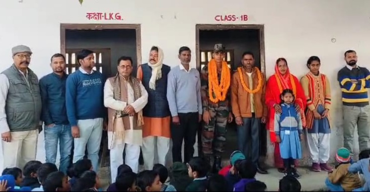 अतरौलिया आजमगढ़ क्षेत्र के एमपी मेमोरियल चिल्ड्रेन स्कूल में पढ़ने वाले होनहार बच्चे का चयन भारतीय सेना आर्मी में होने के बाद जहां विद्यालय परिवार काफी खुश था वही आज ट्रेनिंग पूरी कर अपने घर आए सौरव यादव पुत्र सुभाष यादव 19 वर्ष निवासी देहुला सरकार का एमपी मेमोरियल विद्यालय परिवार द्वारा स्वागत व सम्मान किया गया। विद्यालय के छोटे-छोटे बच्चे इस होनहार बालक के साथ सेल्फी लेने के लिए उतावले रहे। सौरभ यादव नर्सरी से हाई स्कूल तक की शिक्षा एमपी मेमोरियल चिल्ड्रेन स्कूल 2020 में पूरी की। तत्पश्चात उद्योग विद्यालय कोइलसा से 2022 में इंटरमीडिएट पूरी की। सौरभ यादव दो भाईयो में सबसे छोटे हैं बड़े भाई मनीष यादव तथा बहन श्वेता यादव है । सौरभ यादव की माता का नाम सुनीला देवी गृहड़ी है। सौरव यादव शुरू से ही काफी मेहनती थे 6 माह की कठिन ट्रेडिंग के उपरांत जब वर्दी में अपने घर पहुंचे तो सबसे पहले उन्हें अपने विद्यालय व गुरुजनों की याद आई। तत्पश्चात आज शनिवार को विद्यालय परिवार द्वारा उनका स्वागत और सम्मान किया गया ।प्रबंधक राणा प्रताप सिंह ने बताया कि मुझे बहुत गर्व महसूस हो रहा है कि आज मेरे विद्यालय का एक होनहार लड़का देश सेवा में जाकर अपने माता-पिता तथा विद्यालय का नाम रोशन किया है। शुरू से ही यह बालक काफी मेहनती था और आज देश सेवा में नौकरी हासिल कर पूरे विद्यालय का मांन और सम्मान बढ़ाया है। प्रिंसिपल सुनील कुमार सिंह ने कहा कि विद्यालय के इस होनहार बच्चे के उज्जवल भविष्य की कामना करते हैं साथ ही साथ सभी बच्चों को इस तरह से अनुशासित रहकर पढ़ाया जाता है कि वह बाहर जाकर हमेशा विद्यालय और अपने गुरुओं का मांन और सम्मान करें। यह बच्चा शुरू से यहीं पर पढ़ा है हम लोगों का यही उद्देश्य रहता है कि यहां पढ़ा हुआ हर बच्चा जो ग्रामीण क्षेत्र से आता है उसे निकालकर उन्हें सही दिशा देकर एक अच्छा स्थान पर पहुंचाने में मदद करें। सौरभ यादव ने बताया कि आज माता-पिता और गुरुजनों के द्वारा बताए गए मार्ग पर चलकर यह मुकाम हासिल किया हूं जिसमें विद्यालय परिवार का बहुत बड़ा सहयोग है। देश सेवा के लिए बहुत ही कड़ी मेहनत करनी पड़ती है अपने हौसले को कभी कम न होने दे सफलता अवश्य प्राप्त होती है। इस मौके पर जनार्दन मिश्रा, बजरंगी सिंह ,अखिलेश साहनी, विजय कुमार ,ठाकुर सिंह ,विजय भान, निमेष मौर्य,अभय सिंह, विद्यालय के डायरेक्टर राजदीप सिंह उपस्थित रहे।