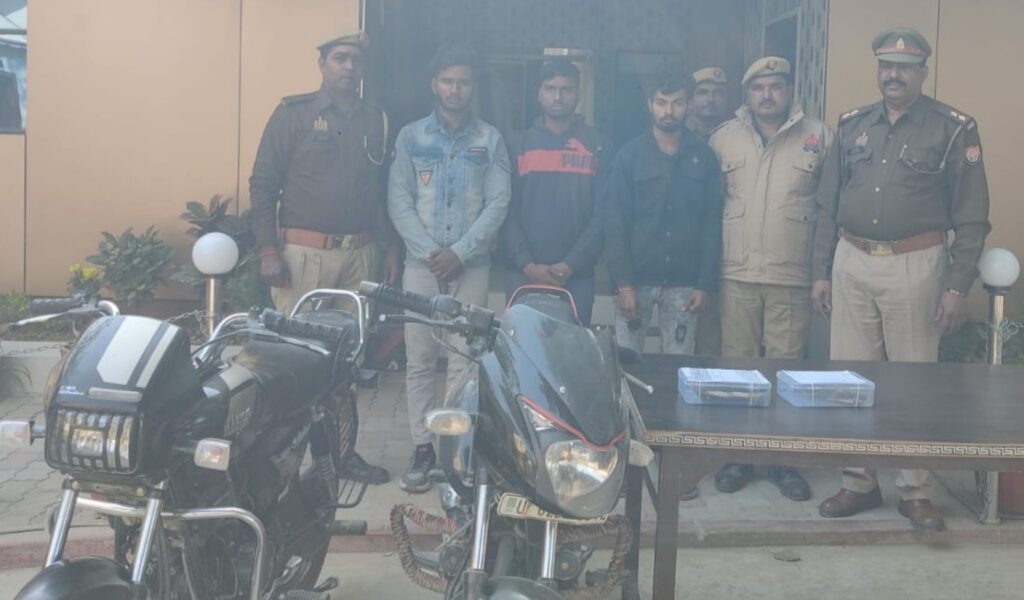 फूलपुर आजमगढ़ हेमराज मीना पुलिस अधीक्षक, आजमगढ़ के निर्देशन में अपराध व अपराधियों पर अंकुश एवं प्रभावी नियन्त्रण बनाये रखने हेतु चलाये जा रहे अभियान के क्रम में आज दिनांक- 12.12.2024 को आजमगढ़ पुलिस द्वारा निम्नवत कार्यवाहियां की गयी है। दिनांक 24.11.2024 को वादी मुकदमा अखिलेश यादव पुत्र मानबहादुर यादव सा0 भेडिया थाना फूलपुर जनपद आजमगढ़ जो अपनी मो0सा0 नम्बर-UP 50 CKxxxx से भेडिया शादी समारोह मे गये थे जहाँ से वादी की मो0सा0 चोरी हो गयी, के सम्बन्ध मे थाना फूलपुर पर मु0अ0सं0-576/2024 धारा 303(2) बीएनएस पंजीकृत है। दिनांक- 12.12.2024 को चौकी प्रभारी उ0नि0 श्री रज्जन द्विवेदी मय हमराह द्वारा मुकदमा उपरोक्त में विवेचना से प्रकाश में आये अभियुक्त 1 शिवांश मौर्या पुत्र विक्रम मौर्या निवासी ग्राम ओरिल डीहवाँ थाना पवई जनपद आजमगढ़ 2. सुरज यादव पुत्र इन्द्रजीत यादव निवासी ग्राम पाईन्दापुर थाना दीदारगंज जनपद आजमगढ़ 3. अभिजीत चौहान पुत्र पवन कुमार चौहान सा0 गुवाई थाना दीदारगंज,आजमगढ़ को चोरी की मोटर साइकिल व अवैध असलहा कारतूस के साथ पलिया पुलिया मोड़ से समय करीब 1.53 बजे हिरासत पुलिस में लिया गया, गिरफ्तारी व बरामदगी के आधार थाना फूलपुर पर मु0अ0सं0-585/24 धारा 3/25 शस्त्र अधि0 पंजीकृत कर गिरफ्तार अभियुक्तों का चालान मा0 न्यायालय किया गया।