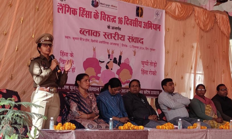 अतरौलिया आजमगढ़ ग्रामीण पुनर्निर्माण संस्थान द्वारा संचालित ग्रामीण महिला सशक्तिकरण कार्यक्रम के अंतर्गत ब्लॉक की 10 ग्राम पंचायतों में 25 नवंबर से 10 दिसंबर तक लैंगिक हिंसा विरुद्ध 16 दिवसीय अभियान के अंतर्गत ब्लॉक स्तरीय संवाद कृष्णा मैरिज हाल अतरौलिया में किया गया। जिसके मुख्य अतिथि 100 शैय्या जिला अस्पताल के मुख्य चिकित्साधीक्षक डॉ. एस. के. ध्रुव, सीएचसी अतरौलिया से अधीक्षक डॉ. शिवाजी सिंह, डॉ. अमरजीत, वन स्टॉप सेंटर से सरिता पाल व ममता जी, एसआई अनुराधा यादव, चाइल्ड हेल्पलाइन से शैलेन्द्र मिश्रा, सीडीपीओ सीता यादव उपस्थित रहीं। इस अवसर पर 16 अभियान के बारे में संस्था सचिव राजदेव चतुर्वेदी द्वारा बताया गया कि हर साल 25 नवंबर से 10 दिसंबर लैंगिक हिंसा के विरुद्ध एक वैश्विक अभियान होता है। लैंगिक हिंसा के अंतर्गत महिलाओं के साथ होने वाली हिंसा के मूलभूत कारण परिवार के अंदर और बाहर सभी रिश्तों के बीच होने वाली सत्ता संबंधों से महिलाओं पर होने वाली हिंसा का करीबी जुड़ाव है। इसके बाद चाइल्ड हेल्पलाइन से शैलेन्द्र मिश्रा द्वारा चाइल्ड हेल्पलाइन नंबर 1098 तथा मुख्यमंत्री स्पॉन्सरशिप योजना के बारे में जानकारी दी। वन स्टॉप सेंटर से सरिता पाल जी द्वारा 181, 1090 हेल्पलाइन नंबर तथा मुख्यमंत्री कन्या सुमंगला योजना के बारे में बताया कि इस योजना के अंतर्गत पहले 6 किस्तों में कुल 15 हजार मिलता था लेकिन 1 अप्रैल 2024 से सरकार ने इसे 25 हजार कर दिया और यह योजना बेटी बचाओ, बेटी पढ़ाओ के लिए तथा मादा भ्रूण की जांच के बाद गर्भ समापन को रोकने के लिए इस योजना की शुरुआत की गई। ममता द्वारा पोक्सो एक्ट के बारे में बताया कि यह बालिग के लिए 363, नाबालिग होने पर 366 धारा लगती है तथा हमारे वन स्टॉप सेंटर पर पॉक्सो एक्ट के तहत एक साल के अंदर कुल 560 बच्चियों का केस दर्ज हुआ है । एसआई अनुराधा यादव द्वारा 1090 वूमन हेल्पलाइन नंबर, 1930 नेशनल साइबर क्राइम, डिजिटल अरेस्ट के बारे में बताया गया । गुड टच और बैड टच के बारे में बताया गया कि यदि कोई बच्चा स्कूल जा रहा है और उसके साथ 3 तरीके से बैड टच होते है जिसमें पहला सीने पर दूसरा कमर के नीचे तीसरा दोनों पैरों के बीच में टच किया जाता है तो वह बैड टच होता है। साइबर क्राइम के बारे में बताया गया कि इस तरह के फ्रॉड बहुत ज्यादा हो रहे हैं जिसमें अगर आपसे कोई ओटीपी नंबर पूछे या कोई वीडियो कॉल पर अपने आप को कोई सीबीआई ऑफिसर बताए और पैसे मांगे तो आप इससे बचकर रहे, इस पर एसआई अनुराधा द्वारा दो शब्द बोलते हुए कहा गया कि सब बोलते हैं – *महिलाओं का कोई घर नहीं होता, परंतु सच है कि औरतों के बिना कोई घर घर नहीं होता*। सीडीपीओ सीता यादव द्वारा एकीकृत बाल विकास परियोजना के बारे में बताया कि हमारे अतरौलिया ब्लॉक में 199 