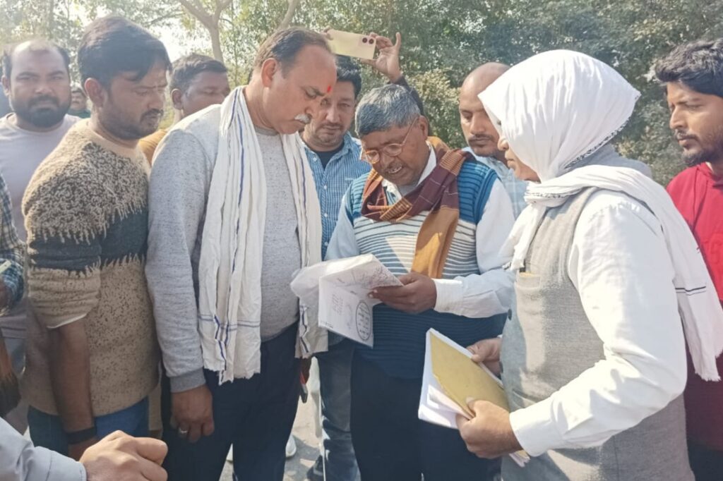 माहुल(आजमगढ़)। स्थानीय नगर से पवई जाने वाली सड़क के किनारे इमामगढ़ गाँव की ग्राम सभा और सड़क की भूमि को शुक्रवार को राजस्व टीम ने मापी कर चिन्हांकित किया। इमामगढ़ गांव में अशरफियां कांवेंट स्कूल के पास गाटा संख्या 144 की भूमि के प्लाटिंग का कार्य कुछ लोगों द्वारा किया जा रहा। बुधवार को माता प्रसाद पाण्डेय आदि के नेतृत्व में ग्रामसभा के लोग वहां इकट्ठा होकर प्लाटिंग कार्य कर रहे लोगों पर ग्रामसभा की भूमि के कब्जे का आरोप लगाते हुए विवाद शुरू कर दिया था।विवाद को देखते हुए उपजिलाधिकारी फूलपुर सुरेंद्र नाथ तिवारी के निर्देश पर क्षेत्रीय लेखपाल ने प्लाटिंग कार्य भूमि की मापी रोक दिया था। इस दौरान शुक्रवार को राजस्व निरीक्षक के साथ लेखपाल महताब आलम और पंकज कुमार ने वहां पहुंच कर भूमि की मापी किया। उसके बाद सड़क के किनारे की लोक निर्माण विभाग और ग्रामसभा की भूमि को चिन्हित किया और प्लाटिंग का कार्य कर रहे लोगों पर उक्त भूमि को छोड़कर कार्य करने की अनुमति दिया। मापी में प्लाटिंग का कार्य सरकारी भूमि को छोड़ कर पाया गया। इस मौके पर ग्राम प्रधान दिनेश यादव, माता प्रसाद पाण्डेय, भाजपा नेता सैफ अब्बास रिजवी, वैस अहमद, नौशाद, अश्वनी पाण्डेय आदि रहे।।