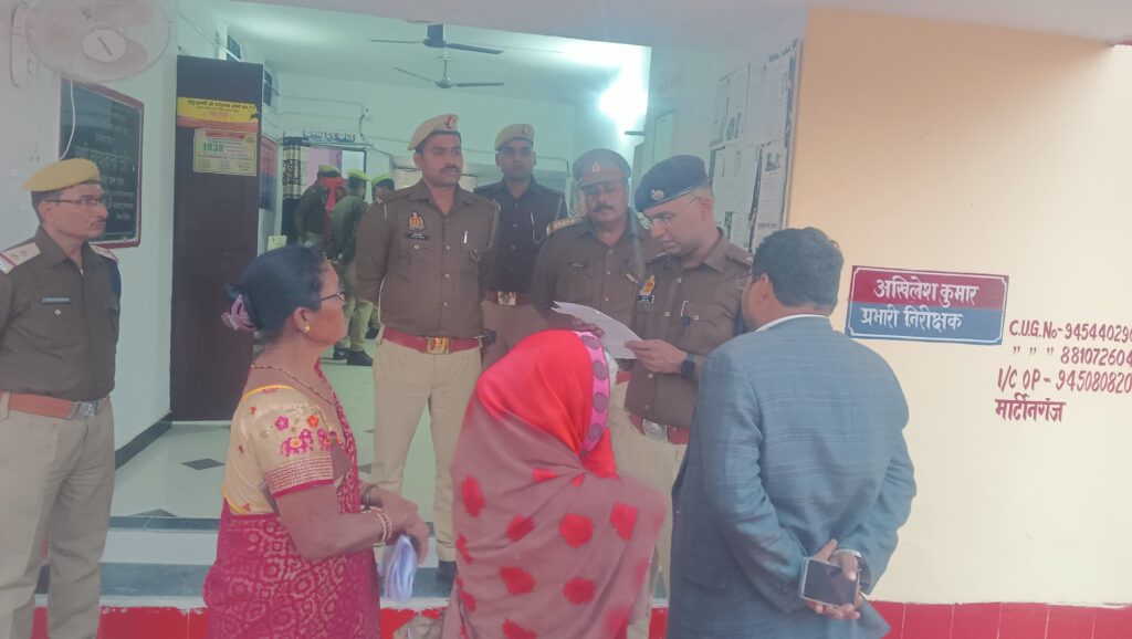 आजमगढ़ दीदारगंज थाना परिसर में देर शाम ग्रामीण एसपी चिराग जैन ने पहुंच कर चौकीदारों को अपने कर्तव्यों का निर्वाहन निष्पक्षता से करने का निर्देश दिया वहीं चौकीदारों ने अपनी समस्या बताते हुए कहा कि साहब बहुत डंड है कंबल और आने जाने हेतु साइकल उपलब्ध कराई जाय जहां ग्रामीण एसपी ने बारी बारी समस्या सुनी और सभी चौकीदारों को लाल साफा व सीटी पहनाकर प्रोत्साहित किए। वहीं जनसुनवाई कक्ष में पहुंच कर लोगों की समस्या सुनी जहां फरियादी सुषमा राय पत्नी नरेंद्र ने बताया कि मैं घर पर अकेली रहती हूं मेरे पट्टीदार आय दिन रात में दारु पीकर मेरे घर में घुस आते है और मुझे गाली गुप्ता व मारते पीटते व अभद्रता करते है जिसकी शिकायत हमने थाने में की परंतु संतोष जनक कोई कारवाई नहीं किए उल्टा उससे शिकायत पत्र लेकर मेरे ऊपर फर्जी मुकदमा दर्ज कर दिए ।जहां ग्रामीण एसपी चिराग जैन ने पीड़ित पर पूर्व में दर्ज मुकदमे की जांचकर उचित कार्रवाई का आदेश दिए पीड़ित का तत्काल मुकदमा दर्ज कर दोषियों पर कार्रवाई करने का निर्देश दिया। वहीं जाते जाते ग्रामीण एसपी ने थाने का निरीक्षण किए और एसएचओ कार्यालय के सुंदरी करण का उद्घाटन किया। जहां उपस्थित रहे इंस्पेक्टर अखिलेश कुमार, एसआई नरेंद्र,पांडे,अवधेश कुमार, विनोद कुमार यादव, रूपेश सिंह, धर्मेंद्र तिवारी आदि।