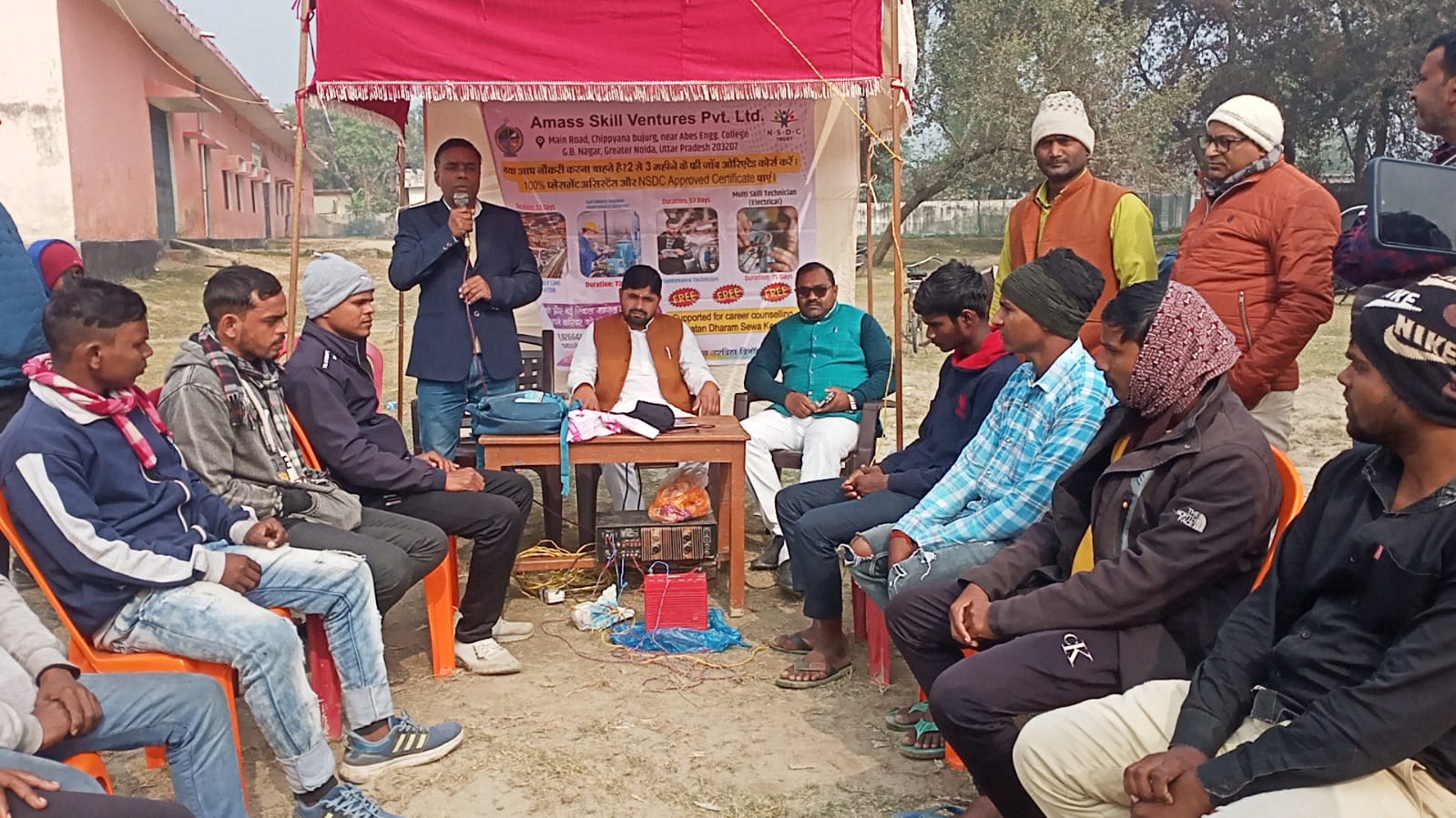 रौनापार (आजमगढ़) ग्राम पंचायत उर्दिया में इंटर कॉलेज के मैदान में आमस स्किल वेंचर ग्रेटर नोएडा द्वारा युवकों के प्राइवेट जॉब के लिए लगा शिविर। नवनियुक्त भाजपा रौनापार मंडल अध्यक्ष वीरेंद पटेल की अध्यक्षता में शिविर लगाया गया । जिसमें काफी युवकों ने भाग लिया। सेंटर इंचार्ज गुड़गांव अजय कुमार श्रीवास्तव ने बताया कि योग्यता दसवीं पास होना चाहिए।18 से 40 वर्ष की उम्र के युवक अपना आवेदन कर सकते हैं। जिनको कंपनी द्वारा 52 दिन की ट्रेनिंग ग्रेटर नोएडा में दी जाएगी। शिविर में बृजेश पटेल, सत्यम, राहुल, सुजीत ,मनोज, विजय, ज्योति, प्रीति सहित 30 बच्चों ने आवेदन किया। इस अवसर पर विद्यासागर पटेल सहित काफी संख्या में युवक उपस्थित रहे ।