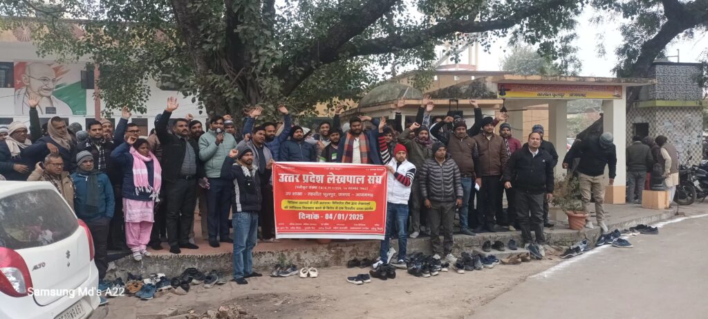फूलपुर आजमगढ़ एंटी करप्शन विजिलेंस टीम के द्वारा किये जा रहे लेखपालों के उत्पीड़न को लेकर लेखपाल संघ तहसील फूलपुर इकाई के द्वारा एक दिवसीय सांकेतिक धरना प्रदर्शन दिया। इस दौरान लेखपाल संघ ने तहसील दिवस के अवसर जमकर विरोध प्रदर्शन किया। इसके बाद मुख्यमंत्री को सम्बोधित ज्ञापन जिलाधिकारी को सौपा।तहसील फूलपुर लेखपाल संघ के अध्यक्ष करुणेश सिंह की अध्यक्षता में एक दिवसीय सांकेतिक धरना प्रदर्शन शनिवार को फूलपुर तहसील परिसर में किया गया।मंत्री सोनू गिरी ने कहा कि प्रदेश नेतृत्व के आह्वाहन पर एक दिवसीय सांकेतिक धरना प्रदर्शन किया जा रहा है।एंटी करप्शन और विजीलेंस टीम के द्वारा प्रदेश के लेखपालों का उत्पीड़न किया जा रहा है।महराजगंज,लखनऊ, गाजीपुर आदि जिलों में लेखपालों का उत्पीड़न किया जा रहा है,जो सरासर अन्याय है। जबकि लेखपाल ही है जो प्रथम दृष्टया गांवो में जाकर ग्रामीणों की समस्या सुनकर निराकरण करता है।लेखपालों का उत्पीड़न अगर बन्द नही हुआ तो व्यापक आंदोलन किया जाएगा। लेखपाल संघ फूलपुर के द्वारा अपनी मांगों को लेकर जिलाधिकारी नवनीत सिंह चहल को ज्ञापन दिया।इस अवसर पर गंगा प्रसाद, महेंद्र गुप्ता, यशपाल चौहान, रामजीत यादव,विशाल सिंह, कृष्ण कुमार यादव, शैलेंद्र यादव, वासुदेव यादव,सुग्रीव तिवारी,सुखबीर सिंह,धर्मेंद्र गौतम,नागेन्द्र तिवारी,महेश प्रजापति,राम नरायण पाण्डेय आदि लोग रहे।अध्यक्षता करुणेश सिंह एवं संचालन सोनू गिरी ने किया।