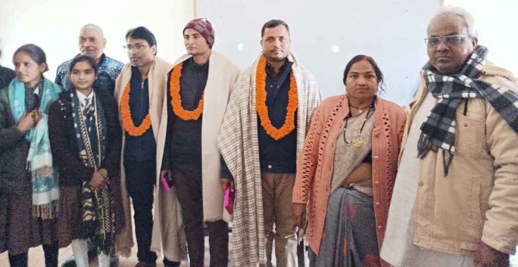 माहुल (आजमगढ़) स्थानीय नगर के प्रतिष्ठित डीपीएस पब्लिक स्कूल में रविवार को स्वागत सम्मान समारोह का आयोजन किया गया। जिसमें विद्यालय से निकलकर प्रोफेसर,प्रवक्ता और अध्यापक बने तीन होनहारों का अंगवस्त्र और माला पहना कर जोरदार स्वागत किया गया। डीपीएस पब्लिक स्कूल से इंटरमीडिएट उत्तीर्ण कर चुके यहां के छात्र हिमांशु श्रीवास्तव का चयन असिस्टेंट प्रोफेसर डीएवी पीजी कालेज आजमगढ़, बृजभान बिंद का बिहार प्रदेश में प्रवक्ता और प्रणव पाण्डेय का चयन सहायक अध्यापक पद पर हुआ। जिससे विद्यालय में खुशी का माहौल व्याप्त है।जिस समय विद्यालय परिवार द्वारा इन तीनों होनहारों को माला पहनाकर और अंगवस्त्र देकर स्वागत किया गया उस समय छात्र छात्राओं की तालियों की ध्वनि से पूरा विद्यालय गूंज उठा। इस अवसर पर विद्यालय के प्रबंधक अजय श्रीवास्तव ने कहा कि इन तीनों ने प्राथमिक शिक्षा से लेकर उच्च शिक्षा के विशिष्ट पद को प्राप्त कर विद्यालय परिवार का मस्तक ऊंचा किया है। यह गर्व की बात है। उन्होंने छात्रों को निरंतरता के साथ एकाग्र मन से अध्ययन करने के लिए प्रेरित किया और कहा कि यही एक मात्र सफलता की कुंजी है इस अवसर पर अंजू श्रीवास्तव, हिमांशु श्रीवास्तव, वंशिका श्रीवास्तव, शैलेंद्र यादव, आद्या प्रसाद यादव के साथ ही साथ विद्यालय के समस्त छात्र और छात्राएं उपस्थित रही।।