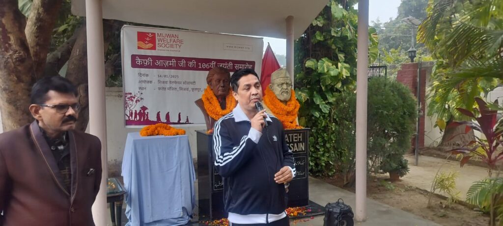 फूलपुर आजमगढ़ शायर कैफ़ी आजमी का जन्म दिवस मंगलवार को उनके पैतृक गांव मेजवां स्थिति फतेह मंजिल में मनाया गया।इस दौरान कैफ़ी आजमी गर्ल्स कालेज और चिकनकारी सेंटर की छात्राओं द्वारा विविध सांस्कृतिक कार्यक्रम प्रस्तुत किए गए।कैफ़ी की नज्म ‘प्यार का जश्न नई तरह मनाना होगा,गम किसी के दिल में सही गम को मिटाना होगा,पेश किया। कार्यक्रम की शुरुआत, डाक्टर मोहम्मद अजीम, आशुतोष त्रिपाठी, संयोगिता, जितेंद्र हरि पांडेय, ने शायर कैफ़ी आजमी की मूर्ति पर दीप प्रज्वलित और माल्यार्पण कर किया।डॉ अजीम ने कहा कि मेरा सौभाग्य है कि मुझे ऐसे महान तरक्की पसंद शायर के क्षेत्र में काम करने का मौका मिला।उनके बारे में बहुत सारी जानकारियां भी मिल रही है।उन्होंने अपने गांव में हर तरह की सुविधा दे रखी है।एके वर्मा ने कहा कि कैफ़ी आज़मी ने अपनी शायरी से समाज को बहुत कुछ दिया है।नगर पंचायत अध्यक्ष राम आशीष बरनवाल ने कहा कि कैफ़ी साहब की शायरी में गरीबों और मजलूमों का दर्द झलकता है।मिजवा सोसाइटी के प्रबंधक आशुतोष त्रिपाठी ने सभी का आभार प्रकट किया। संचालन जीतेंद्र हरि पांडेय ने किया। इस मौके पर मनोज प्रजापति, जयराम, अफरोज, निखिल जयसवाल, शीतला प्रसाद, लल्लन आदि लोग थे।