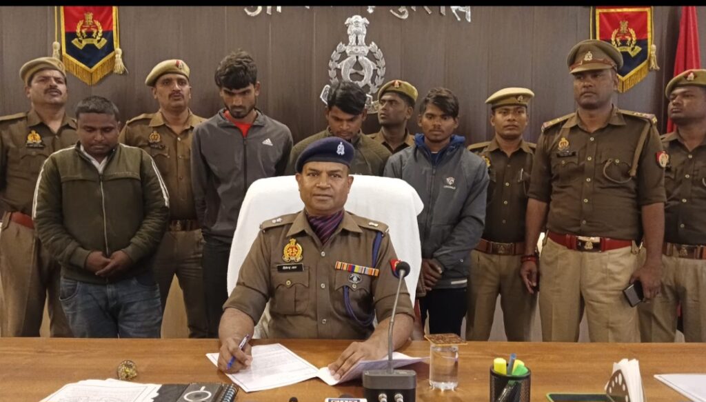 को समय करीब 04.20 बजे गिरफ्तार किया गया। गिरफ्तार अभियुक्तों के कब्जे से 16 डी0जे0 मशीन, 02 मूविंग लाइट , 20 मिनी स्पीकर , 01 स्कार्पियो गाड़ी, 01 पिकअप गाड़ी बरामद हुआ। गिरफ्तारी व बरामदगी के आधार पर मुकदमा उपरोक्त में धारा 112,317(2),317(4)बी0एन0एस0 की बढ़ोत्तरी की गयी। गिरफ्तार अभियुक्तों का चालान मा0न्यायालय किया गया ।