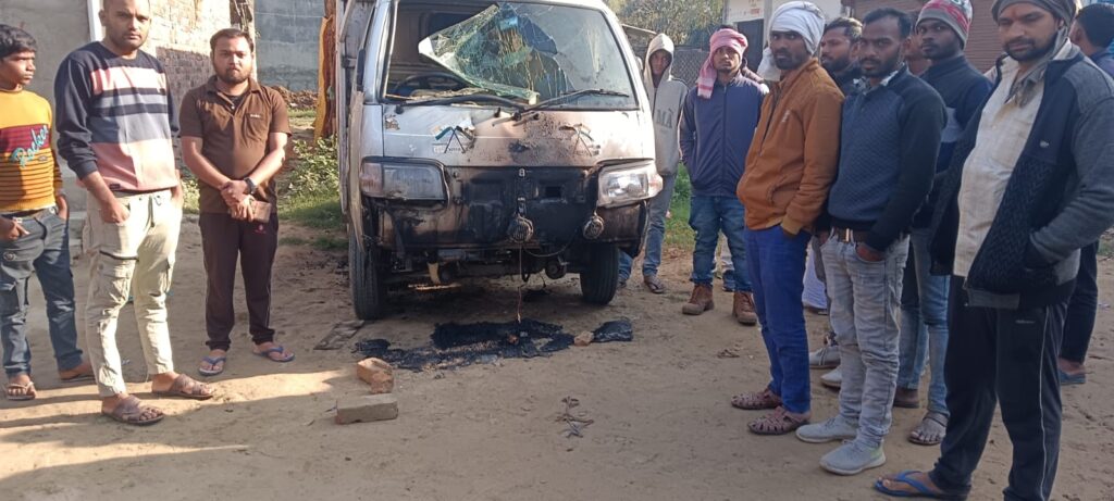 माहुल आजमगढ़ अहरौला कस्बे में 10 दिनों के अन्दर दुसरी बार फिर से गुरुवार की रात थाने से चंद कदमों की दूरी पर मतलूबपुर कस्बे में खड़ी एक पिकअप गाड़ी को जला दिया गया है जानकारी के अनुसार पिकअप पूर्व प्रधान के घर के सामने खड़ी थी। जिसके जलने से सब्जी मंडी व्यापारियों में आक्रोश व्याप्त है। सब्जी मंडी इस समय उपद्रवियों का केंद्र बनी हुई है बीते 10 दिनों के अंदर उपद्रवियों के द्वारा दुसरी बार इस प्रकार की घटना को अंजाम दिया गया। बीती रात रामकिशुन सोनकर पुत्र जवाहिर सोनकर की पिकअप गाड़ी में लगभग 11:00 बजे रात में अज्ञात लोगों के द्वारा आग लगा दी गई है गाड़ी से उठती आग को देखकर गाड़ी के ड्राइवर को फोन के माध्यम से स्थानीय लोगों द्वारा सूचित किया गया सूचना मिलने पर चालक द्वारा गाड़ी मालिक को सूचना दी गई घटनास्थल पर धू धू कर गाड़ी जल रही थी और स्थिति बहुत भयानक हो सकती थी क्योंकि उसी से कुछ दूरी पर अन्य पेट्रोल डीजल एवं सीएनजी गाड़ियां भी खड़ी थी यह अग्निकांड एक ही व्यक्ति के साथ दोबारा हुआ है जिससे इसका कारण पुरानी रंजिश माना जा रहा है पीड़ित रामकिशुन सोनकर के अनुसार लगभग साल भर पहले इसी गाड़ी के चारों टायरों को बुरी तरीके से काट दिया गया था उस समय पीड़ित द्वारा नामजद तहरीर देने के बाद भी पुलिस के द्वारा कोई कार्रवाई नहीं की गई बल्कि उल्टे पीड़ित के पांच परिजनों का ही शांति भंग में चालान कर दिया गया था एक साल बाद फिर उसी पिकअप गाड़ी को आग लगा दी गई पीड़ित द्वारा अहरौला थाने में लिखित तहरीर देकर कार्रवाई की मांग की गई है। ज्ञात हो कि 28 जनवरी की रात सब्जी मंडी में भाजपा नेता विवेक सोनकर की खडी कार में भी ठीक इसी प्रकार आग लगाकर जलाया गया था करीब चार सब्जी मंडी के दुकानदारों की दुकानों को भी आग लगा दिया गया था जिससे लाखों की क्षति हुई थी पुलिस ने अज्ञात के खिलाफ मुकदमा दर्ज कर लिया था। पीड़ितों का कहना है कि बार बार बेखौफ उपद्रवियों के द्वारा थाने से चंद कदम की दूरी पर आगजनी की जा रही है पुलिस के लिए भी बड़ी चुनौती है। हम व्यापारी डरें व सहमें हैं।।