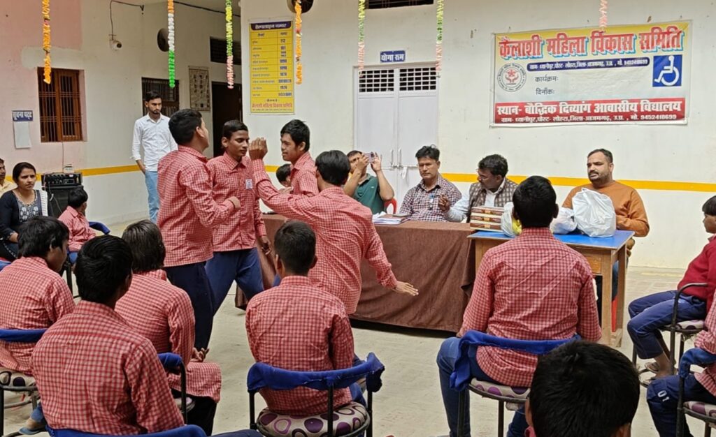 अतरौलिया आजमगढ़ आज शनिवार को डॉ देवानन्द यादव अधीक्षक सामुदायिक स्वास्थ्य केन्द्र कोयलसा ने अपनी टीम के साथ कैलाशी महिला विकास समिति द्वारा संचालित मानसिक दिव्यांग आवासीय विद्यालय ध्यानीपुर, लोहरा, आजमगढ़ का आकस्मिक निरीक्षण किया। इस दौरान विद्यालय में निवासरत मानसिक दिव्यांग बच्चों की विभिन्न प्रकार की गतिविधयों का अवलोकन करते हुए सभी बच्चों के स्वास्थ्य का परीक्षण किये । इस दौरान मानसिक दिव्यांग बच्चों ने सांस्कृतिक कार्यक्रम का भी प्रदर्शन किया जो काफी अच्छा रहा । कार्यक्रम के अन्त में स्वास्थ्य अधीक्षक डॉ.देवानन्द ने दिव्यांग बच्चों में मिठाई, केला और संतरा,अंगूर, आदि का वितरण भी किया, जिसे पाकर मानसिक दिव्यांग बच्चों के अंदर खुशी व्याप्त हुई। इस अवसर पर डॉ. देवानन्द और सामुदायिक स्वास्थ्य केन्द्र के अन्य स्टाफ , विद्यालय की सुनीता देवी, प्रियंका राय, गंगा प्रसाद, लीलावती, विनीता, रेनू, नीलम मौर्या, निलेश, प्रवीन गिरी, विजयमणि, सुमित, दिवाकर आदि लोग उपस्थित रहे |