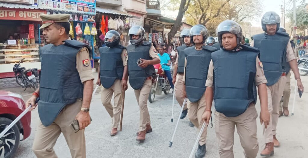 माहुल(आजमगढ़)। होली पर्व पर सुरक्षा का एहसास दिलाने के लिए बुधवार देर शाम अहरौला और माहुल चौकी की पुलिस ने क्षेत्र की विभिन्न बाजारों पैदल मार्च किया।माहुल बाजार में पैदल मार्च करते हुए पुलिस ने पटरियों से ठेला खोमचा हटवाते के साथ ही साथ नगर के दुराचारियों के यहां छापेमारी भी किया।इस दौरान पूरे नगर में हड़कंप की स्थिति रही। थानाध्यक्ष अहरौला अनिल कुमार सिंह के नेतृत्व में क्षेत्र अहरौला, फुलवरिया बाजार में पैदल मार्च करते हुए पुलिस टीम माहुल पुलिस चौकी पर पहुंच कर बाजार में पैदल मार्च किया।मार्च करते समय पुलिस ने बाजार के शंकर तिराहे,शिवाजी मेन चौक खान चौक आदि से पटरियों पर दुकान लगाए ठेला खोमचा दुकानदारों को पटरियों से पीछे कराया।पुलिस यही नहीं रुकी उसके बाद पूरी पुलिस टीम पशु तस्करों और हिस्ट्रीशीटरो के घरों पर जा कर दबिश भी दिया।जिससे बाजार में हड़कंप की स्थिति रही। इस मौके पर चौकी प्रभारी माहुल सुधीर सिंह, एस आई रंजन कुमार साव,विशाल गुप्ता,जय प्रकाश यादव,प्रमोद कुमार सिंह और थाने चौकी का पुलिस बल मौजूद रहा।।