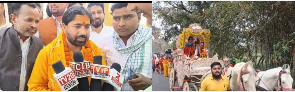 अतरौलिया आजमगढ़ स्थानीय क्षेत्र के टंडवा खपुरा में पचपेड़वा आश्रम पर विगत वर्षों की भांति इस वर्ष भी रविवार को श्री शतचंडी महायज्ञ के दौरान लगभग 5 किलोमीटर लंबी भव्य कलश यात्रा निकाली गई हाथी घोड़ा पालकी संग भारी संख्या में लड़कियों व महिलाओं ने हाथ में कलश लेकर इस शोभा यात्रा में सम्मिलित हुई। जो विभिन्न मार्गो से होते हुए कैलेश्वर धाम पहुंचेगी तत्पश्चात वहां से जल लेकर पुनः पचपेड़वा आश्रम पर पहुंचेगी। इस यज्ञ के आयोजक पंडित चंद्रेश जी महाराज पीठाधीश्वर पंडित कल्पनाथ दास स्मारक सेवा संस्थान पचपेड़वा आश्रम ने बताया कि प्रत्येक वर्ष की भांति इस 36वे वर्ष भी समाधिष्ठ संत ब्रह्मलीन कल्पनाथ जी महाराज (पचपेड़वा बाबा )एवं श्री ब्रह्मलीन मौनी दास जी महाराज की प्रेरणा से एवं श्री हनुमान जी की कृपा से पंडित कल्पनाथ दास स्मारक सेवा संस्थान पचपेड़वा टंडवा खपुरा पर लोक कल्याण हेतु आज रविवार से श्री शतचंडी महायज्ञ का आयोजन भक्त जनों के सहयोग से किया गया है जिसमें वैदिक विद्धानों द्वारा हवन एवं यज्ञ का कार्य संपन्न कराया जाएगा, तत्पश्चात संगीतमयी श्रीराम कथा का प्रवचन मानस मर्मज्ञ श्री विनोदानंद सरस्वती जी महाराज प्रयागराज के व संपूर्णानंद जी महाराज द्वारा आयोजित होगा। सनातन धर्म के प्रति तन मंन से क्षेत्रवासी सहयोग करते हैं व अनाथ संप्रदाय के प्रति लोगों का सहयोग प्राप्त हो रहा है। यह कार्यक्रम 24 मार्च तक चलेगा,ततपश्चात पूर्णाहुति व विशाल भंडारे का आयोजन किया गया है। क्षेत्र वासियों से अपील करते हुए कहा कि यहां आकर भंडारे में प्रसाद ग्रहण करें। प्रवचन कार्यक्रम 12:00 बजे दिन से होगा। लोक कल्याण हेतु उन्होंने क्षेत्रवासियों से बड़ी से बड़ी संख्या में इस यज्ञ में सम्मिलित होकर अपने जीवन को सफल बनाने की अपील किया।