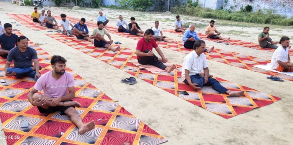 माहुल (आजमगढ़)। अंतर्राष्ट्रीय योग दिवस के अवसर पर नगर के रामलीला मैदान में सुबह 05:00बजे से 06:30बजे तक योगाभ्यास किया गया। इस दौरान योग अध्यापक नीतीश पाण्डेय ने योग के कई गुण व लाभ के साथ साथ सुबह किस तरह के नास्ता और कैसा भोजन लेना चाहिए इसके बारे में उपस्थित लोगों को जानकारी दी और स्वस्थ रहने के लिए प्रतिदिन सुबह योग करने की बात कही। जिसमें मुख्य अतिथि अधिशासी अधिकारी अवधेश मिश्रा, चौकी उप प्रभारी श्याम दूबे व क्षेत्र के सम्भ्रांत लोगों ने योगाभ्यास किया। इस मौके पर आयोजनकर्ता समाज सेवी सुजीत जायसवाल आशु, विक्रांत पाण्डेय, लालू मोदनवाल, संतोष सोनी, सचिन मोदनवाल, छुट्टन गुप्ता, पंकज मोदनवाल, बजरंगी गुप्ता, विमलेश पाण्डेय, ऋषिकेश शर्मा, धरणीधर पाण्डेय, संजय गौतम, गंगादीन जायसवाल, राकेश बघेल, काजू अग्रहरि आदि रहे।