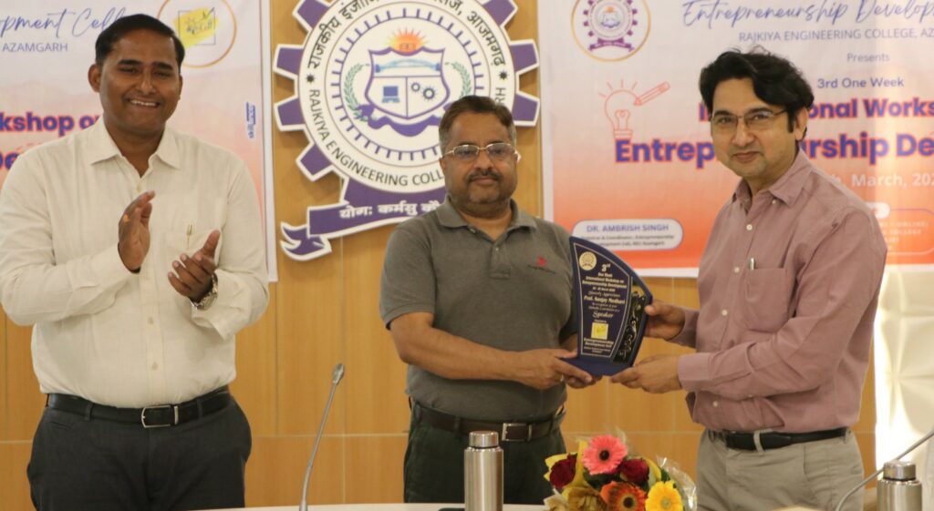 लालगंज (आज़मगढ़ )राजकीय इंजीनियरिंग कालेज देवगांव आजमगढ़ में उद्यमिता विकास पर चल रही तीसरी एक सप्ताह की अंतरराष्ट्रीय कार्यशाला के चौथे दिन लखनऊ विश्वविद्यालय के पूर्व कुलसचिव और प्रबंधन विभाग के आचार्य प्रो संजय मेधावी ने स्टार्टअप को आगे बढ़ाने के लिए तकनीकों के महत्व पर प्रतिभागियों का मार्गदर्शन किया। प्रो संजय मेधावी ने संस्थान के निदेशक प्रो बी के त्रिपाठी के साथ राजकीय इंजीनियरिंग कॉलेज आजमगढ़ के एंटरप्रेन्योरशिप डेवलेपमेंट सेल की वेबसाईट का भी अनावरण किया। अंतर्राष्ट्रीय वक्ता सत्र में क्राइस्टचर्च, न्यूजीलैंड की एनवायरमेंट कैंटबरी के डेटा आर्किटेक्ट अनूप सिंह ने प्रतिभागियों से इनोवेशन और एंटरप्रेन्योरशिप विकाश में एआई तकनीकों के उपयोग एवं महत्व पर अपने विचार रखें। कार्यशाला के प्रतिभागियों ने भी एआई आधारित अपने प्रस्तावित स्टार्टअप मॉडल को अनूप सिंह से साझा कर उनसे सुझाव प्राप्त किया। दिन के अंतिम सत्र में ईडीआईआई अहमदाबाद के आचार्य और गवर्नमेंट प्रोजेक्ट्स विभाग के निदेशक प्रो अमित कुमार द्विवेदी ने पोस्ट एंटरप्राइज प्रबंधन को समझाते हुए बताया कि स्टार्टअप बनाने के बाद उसको अच्छे से चलाने के लिए क्या सावधानियां बरतनी चाहिए और एक स्टार्टअप को कैसे हम सफल बिजनेस मॉडल में परिवर्तित कर सकते हैं। प्रो अमित द्विवेदी ने संस्थान से छात्र छात्राओं के समूह को ईडीआईआई भ्रमण के लिए भी आमंत्रित किया। कार्यशाला में अतिथियों का स्वागत संस्थान के निदेशक प्रो बी के त्रिपाठी ने पुष्प गुच्छ और स्मृति चिन्ह प्रदान कर किया। कार्यशाला का संचालन संस्थान के कुलसचिव एवं कार्यशाला के समन्वयक डॉ अम्बरीष सिंह द्वारा किया गया किया। सत्र के समापन पर वक्ताओं एवं प्रतिभागियों को धन्यवाद ज्ञापन डॉ कौशल कुमार शुक्ला द्वारा किया गया। कार्यशाला में संस्थान के शिक्षको सहित अतुल तिवारी, राबिन उपाध्याय, संजय राय, सचिन सिंह, शुभम यादव, राजीव राजेश, गुड़हल चौहान सहित अन्य की महत्त्वपूर्ण भूमिका रही।