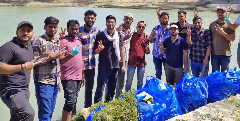 लालगंज (आज़मगढ़ )सरावां ग्राम निवासी आत्रेय सिंह के नेतृत्व में पिछले सप्ताह शुरू हुए स्वच्छता अभियान को आगे बढ़ाते हुए युवाओं ने पुनः नवरात्र के प्रथम दिन ही प्रातः काल पल्हना धाम पहुंच कर पहले घाट की सफाई की उसके बाद मृतप्राय हो चुके पल्हना धाम पोखरे को जो कि अपने आप में कई इतिहास समेटे हुए हैं उसको अभियान चला कर पोखरे में उतरकर उसे जाल की मदद से जलकुंभी मुक्त किया जिससे जल की अविरल धारा एकबार फिर से प्राणमान हो गई ये देख कर पहले दिन आए दर्शनार्थियों ने युवाओं के प्रयास को सराहा वहां मौजूद प्रशासन ने भी इस उत्तम अभियान की उक्तकंठ से प्रशंसा की आत्रेय सिंह व सभी युवाओं ने वहां कड़ाही चढ़ाने आए सभी दर्शनार्थियों को कूड़ा बैग देकर उनसे उनके द्वारा होने वाले कूड़े को उसी बैग में डालकर डिस्टबिन में डालने की विनती की और कहा कि सभी के योगदान से ही ये घाट और पोखरा जैसे आज स्वच्छ दिख रहा हैं आगे भी हमेशा दिखेगा और ये स्वच्छता अभियान की जनक्रांति अब लालगंज के अन्य धर्मस्थलों को कचड़ा मुक्त बनाने के लिए अभियान चलाएगी इस मौके पर अनन्य सिंह, उत्तम राय, सचिंद्र कौशल, परितोष सिंह, श्रेयस राय, प्रणब पांडे, प्रभात सरोज, दीपेश सिंह, मनीष सिंह, अनिल यादव, रोहित यादव, आदित सिंह, नन्द किशोर तिवारी, आर्यवीर सिंह, सिद्धार्थ गुप्ता व क्षेत्र की जनता भी उपस्थित रहीं