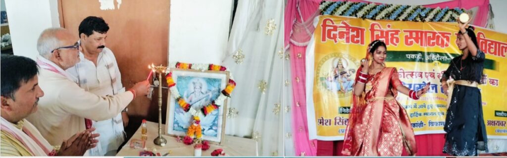 अतरौलिया आजमगढ़ अहिरौला पकड़ी स्थित दिनेश सिंह स्मारक महाविद्यालय का वार्षिकोत्सव एवं सीनियर छात्रों का फेयरवेल कार्यक्रम भव्यपूर्वक मनाया गया। कार्यक्रम का प्रारंभ अतिथियों तथा अभिभावकों के स्वागत समारोह से हुआ। वार्षिकोत्सव एवं फेयरवेल के इस अवसर पर कार्यक्रम के मुख्य अतिथि पूर्व भाजपा जिला अध्यक्ष जय नाथ सिंह तथा विशिष्ट अतिथि राकेश सिंह पालीवाल, पूर्व चेयरमैन बालमुकुंद सिंह, पशुपतिनाथ सिंह, राजेंद्र सिंह, हरीश तिवारी के साथ संयुक्त रूप से मां सरस्वती की प्रतिमा पर माल्यार्पण तथा दीप प्रज्वलन से कार्यक्रम का श्री गणेश किया। अतिथियों का स्वागत विद्यालय के सीनियर वर्ग की छात्राओं ने स्वागत गीत संगीत के वाद्ययंत्र के मधुर तरंगों की तान से किया जिसने सभी श्रोताओं को मंत्रमुग्ध कर दिया । जहां प्रबंधक रमेश सिंह कौशिक ने मुख्य अतिथियो को माल्यर्पण एवं अंगवस्त्र से सम्मानित किया। सांस्कृतिक कार्यक्रम का आगाज़ विद्यालय की बच्चियों ने देश भक्ति, सामाजिकता ,नाटक, एकांकी ,ग्रुप डांस तथा गीत की प्रस्तुति से की। मुख्य अतिथि जय नाथ सिंह ने छात्र-छात्राओं को उनके लक्ष्य के प्रति समर्पित रहने के लिए प्रेरित किया। उन्होंने अपने संबोधन में कहा कि बच्चों को जिज्ञासु प्रवृत्ति का होना चाहिए, बच्चों को जिज्ञासु बनाने में विद्यालय की भूमिका अहम् होती है। उन्होंने संस्कार पर जोर देते हुए कहा कि विद्यालय न केवल पुस्तकीय ज्ञान अपितु जीवन जीने की कला भी सिखाता है। अनुशासन, समय का प्रबंधन, नैतिक मूल्य, सहयोग, सहिष्णुता और सामाजिक व्यवहार जैसे गुण हम विद्यालय से ही सीखते हैं जो मानसिक, शारीरिक और बौद्धिक विकास में सहायता करता है। उन्होंने कहा कि विद्यालय के प्रबंधक रमेश सिंह ने ग्रामीण अंचल में अपनी बेश कीमती जमीन शिक्षा के प्रति समर्पित कर दी जिससे बच्चियों को शिक्षा के लिए कहीं दूर न जाना पड़े। उन्होंने अटल जी की पंक्तियों को सुनाते हुए कहा कि “छोटे मन से कोई बड़ा नहीं होता, टूटे मन से कोई खड़ा नहीं होता “। बच्चों को हमेशा शिक्षा के प्रति जागरूक होना चाहिए। विद्यालय के प्रबंधक पत्रकार रमेश सिंह कौशिक ने अभिभावकों और बच्चियों के प्रति अपनी कृतज्ञता और स्नेह व्यक्त किया। विद्यालय की शैक्षणिक उपलब्धियों को साझा करते हुए उन्होंने अभिभावकों की सराहना की और कहा कि विगत वर्षों में आप लोगों ने जो स्नेह और प्रेरणा विद्यालय को दिया है उसके लिए हम आपके कृतज्ञ हैं। आगामी समय में भी आप लोगों से इस विद्यालय के प्रति इसी प्रकार अत्यधिक स्नेह और विश्वास की आकांक्षा है। कार्यक्रम का संचालन कवि भालचंद्र त्रिपाठी ने किया। चेयरमैन अक्षयवर सिंह व डायरेक्टर विकास सिंह ने आए हुए लोगों क
