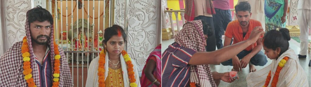 अतरौलिया आजमगढ़ अतरौलिया क्षेत्र के एक गांव में मंगलवार को एक बेहद ही चौंकाने वाला मामला सामने आया। एक विवाहित महिला ने अपने प्रेमी को अपनी ससुराल बुलाया, लेकिन जब महिला के ससुर और अन्य परिवार के लोग गेहूं काट के घर लौटे, तो उन्होंने अपनी बहू और उसके आशिक को घर में एक साथ देखा। इसके बाद ससुर ने तुरंत गांववालों और पुलिस को सूचना दे दी। मौके पर पुलिस पहुंची और दोनों को हिरासत में लेकर गांववालों से पूछताछ की। फिर पुलिस और गांव वालों की आपसी सहमति से मामला शांत कराने की कोशिश की गई लेकिन बात नही बनी। गांववालों और पुलिस के सहमति से दोनों की शादी का फैसला लिया गया और शाम होते-होते दोनों को स्थानीय सम्मो माता मंदिर में एक-दूसरे से शादी के बंधन में बांध दिया गया। मामला स्थानीय थाना क्षेत्र के चत्तुरपुर मधई पट्टी गांव का है, जहां गांव निवासी अमित कुमार पुत्र चंद्रिका प्रसाद की शादी अभी 6 माह पूर्व ही 2024 में अंबेडकर नगर जनपद के जैतपुर थाना अंतर्गत प्रतापपुर कला गांव निवासी शिवपाल निषाद की पुत्री मंजू के साथ हुई थी ।कुछ दिन पहले ही पति अमित कुमार के चाचा का देहांत हो गया तो इसी बीच बहू भी अपनी ससुराल चत्तुरपुर मधईपट्टी आई थी। सुनसान मौका देख बहु मंजू ने अपने 10 वर्ष पुराने आशिक संजय निषाद पुत्र रामानंद जो इसके मायके का ही रहने वाला था उसे अपने घर बुला लिया। गेहूं की कटाई कर परिजन जब घर वापस आए तो दोनों को रंगे हाथ पकड़ लिया और पुलिस को सूचना दे दी। मंजू और उसके आशिक संजय ने बताया कि दोनों पिछले 10 वर्षों से हमेशा एक-दूसरे से संपर्क में थे, और अब उन्होंने एक साथ अपना नया जीवन शुरू करने का निर्णय भी ले लिया था। महिला के ससुर चंद्रिका ने भी बताया कि वे मंगलवार को गेहूं काटने के बाद घर लौटे तो घर में यह दृश्य देखकर हैरान रह गए । इसके बाद उन्होंने तुरंत गांववालों और पुलिस को सूचित किया।हालाकि इस घटना के बाद, लड़की के पिता शिवपाल ने भी प्रतिक्रिया दी और कहा कि आज से हमसे और हमारी लड़की से कोई मतलब नहीं रहेगा। उन्होंने कहा कि इस घटना के बाद अब उनका अपनी बेटी और उसकी नई शादी से कोई रिश्ता ही नहीं रहेगा। पुलिस ने दोनों को काफी समझाया और फिर सभी पक्षों की सहमति से मंदिर में उनकी शादी करवा दी गयी। विवाह के बाद, बहू अपने आशिक के साथ हंसी खुसी उसके घर चली गई। इस घटना को लेकर पूरे गांव में चर्चा का माहौल बना हुआ है, लेकिन पुलिस ने मामले का समाधान बड़े ही शांति और सूझबूझ से कर दिया ।