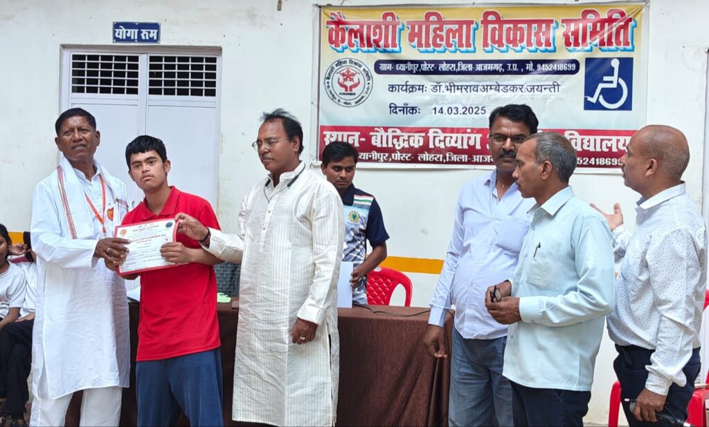 अतरौलिया आजमगढ़ वृहस्पतिवार को कैलाशी महिला विकास समिति द्वारा संचालित बौद्धिक दिव्यांग आवासीय विद्यालय ध्यानीपुर लोहरा ,आजमगढ़ में आजमगढ़ पैरा योगासन जिला स्तरीय प्रतियोगिता 2025 हेतु जिला योगासन खेल संघ के नेतृत्व में चयन शिविर का आयोजन किया गया। इस चयन शिविर में विभिन्न प्रकार के दिव्यांगों ने अपनी प्रतिभा दिखाई । जिसमे अरुण यादव ( कंपटीशन डायरेक्टर) के नेतृत्व में यह कार्यक्रम संपन्न हुआ । इस शिविर के माध्यम से प्रथम स्थान – विपिन मिश्रा , द्वितीय स्थान – सूरज कुमार , तृतीय स्थान – विशाल , चतुर्थ स्थान – प्रियांशु का रहा । कंपटीशन में मुख्य रूप से सहयोगी रहे शैलेश , एनओसी फाउंडेशन एवं रिसर्च काशी,शंभू दयाल तहसील प्रभारी, नेशनल कोच इंद्रजीत नेशनल कोच एवं जज अर्चना, कोच एथलीट एवं जज रितु ,का सराहनीय सहयोग रहा,।अशोक कुमार सचिव डीवाईएसए ने सभी को प्रमाण पत्र दिया तथा आभार व्यक्त करते हुए उन्हें धन्यवाद भी दिया । इस कार्यक्रम में मुख्य रूप से योगेंद्र यादव , विजयमनी, सुमित कुमार, दिवाकर, प्रियंका, प्रवीण , सरोज , रोशनी , रंजना , राहुल आदि लोग रहे ।