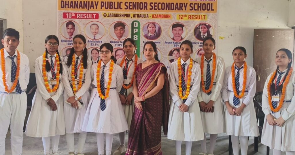 (अतरौलिया) आजमगढ ।स्थानीय क्षेत्र स्थित धनंजय पब्लिक सीनियर सेकेंडरी स्कूल जगदीशपुर अतरौलिया में बृहस्पतिवार को एक गरिमामय कार्यक्रम का आयोजन किया गया, जिसमें सीबीएसई बोर्ड हाई स्कूल और इंटरमीडिएट परीक्षा में उत्कृष्ट प्रदर्शन कर विद्यालय तथा जनपद में सर्वाधिक अंक प्राप्त करने वाले बच्चों बच्चियों को विद्यालय परिसर में अभिभावकों की मौजूदगी में सम्मानित किया गया। सीबीएसई बोर्ड की हाई स्कूल परीक्षा में सर्वोच्च अंक हासिल करने वाले छात्र-छात्राओं में शिवांश गुप्ता 94%प्रथम ,जूही मिश्रा 93.2% दृतीय,श्रेया तिवारी 88% तृतीय, अनन्या पांडेय 85% को सम्मानित किया गया वही इंटर मीडिएट की टॉपर आयुषी कसेरा 98.64% प्रथम, श्रेया विश्वकर्मा 94.6% दृतीय,पलक चौरसिया 94.6%तृतीय, आयुष कुमार सिंह 96%,शिवांश सिंह 93.4% को विद्यालय की प्रधानाचार्य रुचि तिवारी ने मिष्टान खिलाया तथा माल्यार्पण कर स्वागत और सम्मान किया।