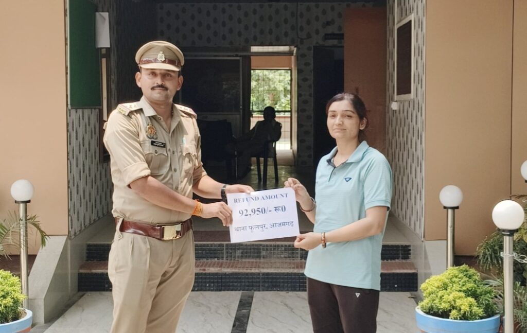 फूलपुर) आजमगढ़ । आवेदिका सपना देवी पुत्री अनिल तिवारी निवासी 221 बावन नौवस्ता कानपुर उ0प्र0 हाल पता- फूलपुर जनपद आजमगढ़ के साथ भिन्न-भिन्न तिथियो को शेयर मार्केट में पैसा निवेश के नाम पर साइबर क्राइम की घटना घटित हुइ थी, जिसमें कि आवेदिका सपना देवी उपरोक्त के खाता से धनराशि 35,000 रू0 व आवेदिका के पति आशीष कुमार पुत्र सतीश के खाता से 83,000 रू0 कट गया था । जिसके सम्बन्ध में साइबर हेल्पलाइन नं0 1930/https://cybercrime.gov.in/ पर साइबर हेल्पडेस्क फूलपुर द्वारा शिकायत पंजीकृत करायी गयी जिसका Ack No. 23112240xxxxx है । जिसमें साइÁबर पुलिस पोर्टल द्वारा 1,18,000 रू0 मे से 92,950 रू0 फ्राड करने वाले के खाते में फ्रीज करा दिया गया । विधिक कार्यवाही करते हुए दिनांक 11.06.2025 को आवेदिका को 92,950 रू0 रूपये वापस करा दिया गया है ।