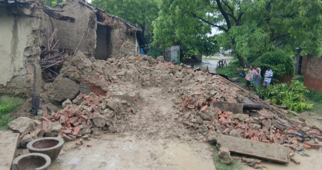 (मार्टिनगंज) आजमगढ़ । मार्टीनगंज तहसील क्षेत्र के निकासीपुर गांव निवासी विनोद कुमार यादव पुत्र राम बचन यादव की रविवार की रात्रि लगभग 1 बजे भारी वर्षा के दौरान कच्चे मकान की दीवाल गिरने से भैंस दब गई। तेज आवाज और चीखपुकार सुनकर ग्रामीण इकठ्ठा हो गए और ईट व मिट्टी हटाकर भैंस को बाहर निकाले, लेकिन तब तक भैंस मर चुकी थी। ग्रामीणों की सहायता से जेसीबी से गड्ढा खोदकर भैस को गाड़ा गया। सूचना मिलने पर हल्का लेखपाल महेन्द्र कुमार ने मौके पर जाकर मुआयना किया और पीड़ित को शासन से आर्थिक मदद दिलाने का आश्वासन दिया ।