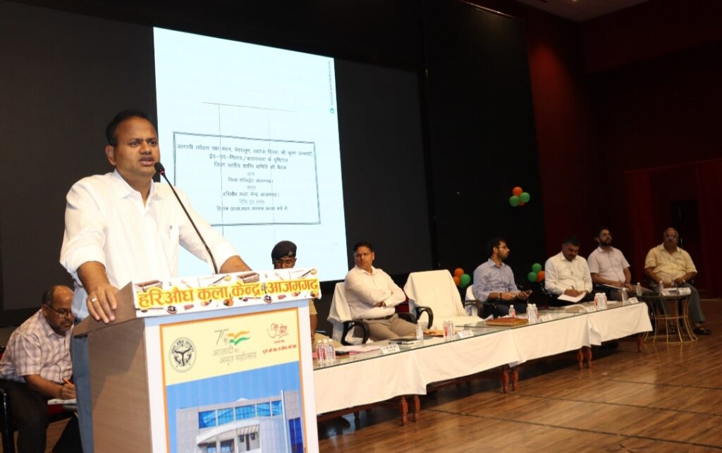 आजमगढ़ । जिलाधिकारी श्री रविन्द्र कुमार एवं वरिष्ठ पुलिस अधीक्षक श्री हेमराज मीना की संयुक्त की अध्यक्षता में आज हरिऔध कला केन्द्र आजमगढ़ में आगामी त्योहार रक्षा बंधन, चेहल्लुम, स्वतंत्रता दिवस, श्रीकृष्ण जन्माष्टमी, ईद-उद-मिलाद/बारावफात आदि के दृष्टिगत जिला स्तरीय शांति समिति की बैठक सम्पन्न हुई, जिलाधिकारी ने कहा कि दिनांक 02 अगस्त से 15 अगस्त 2025 तक हर घर तिरंगा कार्यक्रम चलाया जा रहा है। दिनांक 12 अगस्त को तिरंगा मेला एवं म्यूजिकल कांसर्ट का आयोजन किया जाएगा। उन्होंने निर्देश दिया कि 09 अगस्त को रक्षाबंधन के दिन समस्त थानाध्यक्ष पब्लिक प्लेस पर महिलाओं की सुरक्षा के दृष्टिगत पर्याप्त पुलिस बल की तैनाती सुनिश्चित करें। उन्होंने कहा कि हर घर तिरंगा कार्यक्रम के अंतर्गत सभी अधिकारी यह सुनिश्चित करेंगे कि घरों, सरकारी कार्यालयों, आवासीय भवनों आदि पर लगने वाले तिरंगे के ऊपर कोई अन्य झंडा नहीं होना चाहिए और कहीं भी झंडा झुका ना हो। उन्होने कहा कि झण्डा निर्धारित साइज एवं मानक के अनुसार होना चाहिए। उन्होंने कहा कि 14 अगस्त को चेहल्लुम एवं विभाजन विभीषण स्मृति दिवस मनाया जाएगा। जिलाधिकारी रविन्द्र कुमार ने संबंधित अधिकारियों को निर्देश दिया कि 15 अगस्त को जहां भी तिरंगा फहराया जाएगा, वहां पर साफ-सफाई सुनिश्चित की जाए एवं शासन के निर्देशानुसार अमृत सरोवर पर भी तिरंगा फहराया जाए तथा वहां पर गणमान्य व्यक्तियों को भी आमंत्रित करते हुए झंडा फहराया जाए। उन्होंने विद्युत विभाग को निर्देश दिया कि श्री कृष्ण जन्माष्टमी के दिन विद्युत आपूर्ति बाधित नहीं होनी चाहिए। उन्होंने यह अभी निर्देश दिया कि विद्युत से संबंधित सभी समस्याओं को निर्धारित समय से निस्तारित करें, इसके बावजूद भी कहीं विद्युत से कोई अप्रिय घटना होती है, तो विद्युत विभाग के अधिकारी के ऊपर आवश्यक कार्रवाई सुनिश्चित की जाएगी। उन्होंने कहा कि जहां पर विद्युत तार पर पेड़ों की शाखाएं लटक रहे हैं, वहां पर विद्युत विभाग के अधिकारी एवं वन विभाग के अधिकारी आपस में समन्वय स्थापित कर पेड़ों की छंटाई करें। उन्होंने कहा कि जहां पर विद्युत तार लटक रहे हैं एवं खंभे झुके हैं या अन्य कोई गंभीर समस्या हो, तो संबंधित अधिकारी उसका निस्तारण समय से सुनिश्चित करें। जिलाधिकारी ने कहा कि श्रीकृष्ण जन्माष्टमी को रात के समय सुरक्षा के दृष्टिगत पर्याप्त पुलिस बल तैनात रहे। उन्होने ने कहा कि सभी त्योहारों को परंपरागत तरीके से ही मनाएं, कोई नई परम्परा की शुरूआत न करें। उन्होंने कहा की मूर्ति विसर्जन स्थल का निरीक्षण कर आवश्यक कार्रवाई करें । जिलाधिकारी ने कहा कि शांति समिति की बैठक आयोजित करने का मुख्य उद्देश्य तिरंगे का सम्मान, मह
