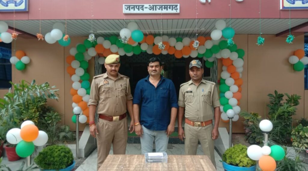 आजमगढ़ । फूलपुर पुलिस ने अवैध असलहा के साथ अभियुक्त को गिरफ्तार किया है, बता दें कि दिनाक 14-08-2025 को उ0नि0 दिनेश कुमार त्रिपाठी मय हमराह द्वारा चेकिंग के दौरान सदरपुर बरौली गेट से दुर्वाषा रोड पर लगभग 50 मीटर पर समय करीब 14-19 बजे एक अदद नाजायज पिस्टल .32 बोर के साथ अभियुक्त विपिन राय उर्फ बब्बू राय पुत्र ईश्वरचन्द्र राय साकिन भँवरूपुर थाना अहरौला जनपद आजमगढ़ हाल पता कस्बा फूलपुर जनपद आजमगढ़ को गिरफ्तार कर जेल भेज दिया ।