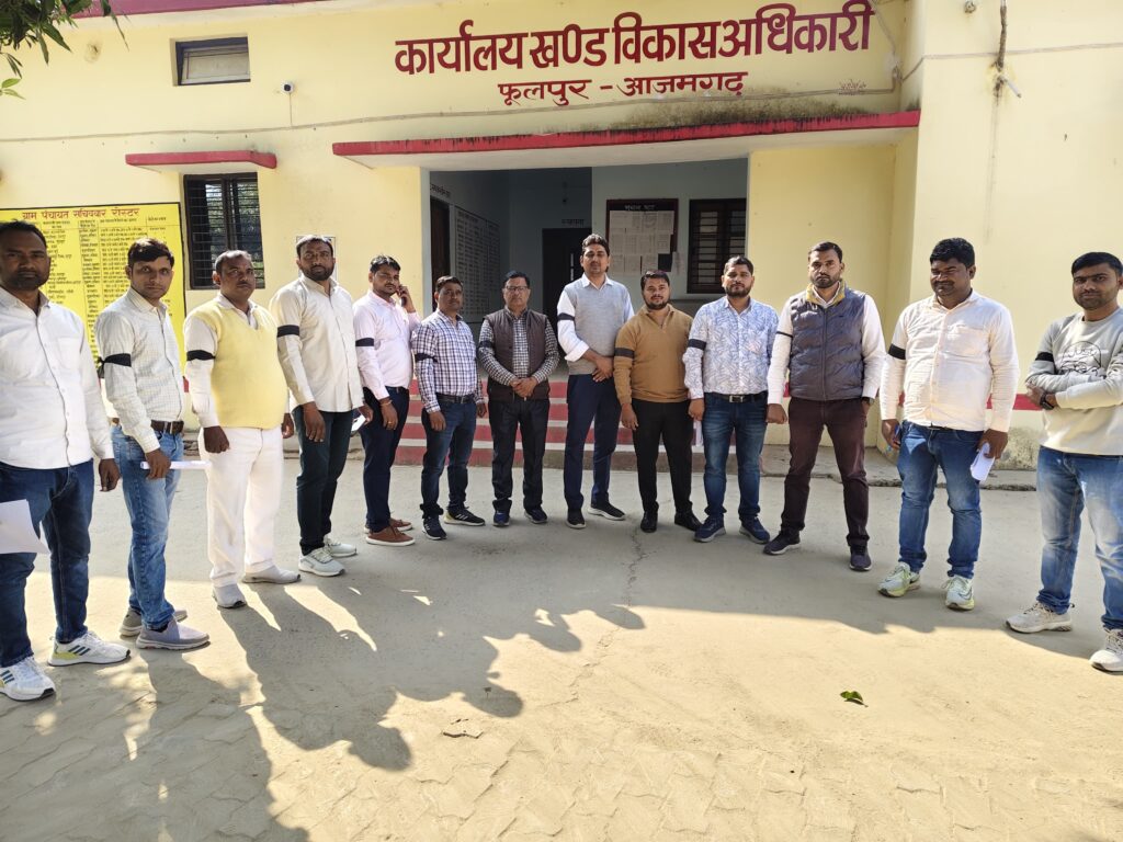 फूलपुर आजमगढ़ फूलपूर ब्लाक मुख्यालय पर ग्राम पंचायत अधिकारी/ग्राम विकास अधिकारी द्वारा ऑन लाइन उपस्थिति दर्ज करने के शासनादेश के खिलाफ चल रहे तीन दिवसीय विरोध में मंगलवार को भी मांगों के समर्थन में सत्या ग्रह आंदोलन के तहत काली पट्टी बांधकर कार्य करते हुए सांकेतिक विरोध किया।ब्लॉक परिसर में सभी सचिव व कर्मचारियों ने काली पट्टी बांधकर नाराजगी जताई।कहा कि जब तक उनकी जायज मांगों पर कार्रवाई नहीं होगी,आंदोलन जारी रहेगा सरकार आनलाईन उपस्थिति लेकर सचिवों के कार्यों में बाधा डालने का प्रयास कर रही है।जो नियम और कानून के खिलाफ है।इस मौके पर विजय चन्द यादव,अभिमन्यु यादव, सुनील कुमार,अरविंद यादव, अरुण यादव,रवि यादव,आदि कर्मचारी मौजूद थे।