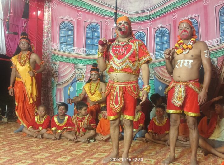 मार्टीनगंज आजमगढ़ तहसील क्षेत्र के पुष्पनगर में चल रही रामलीला में कलाकारों ने अंगद और रावण के...
