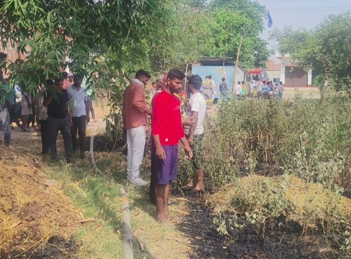सार्ट सर्किट से पुआल में लगी भीषण आग, ग्रामीण तथा फायर कर्मियों के सहयोग से आग पर पाया गया काबू